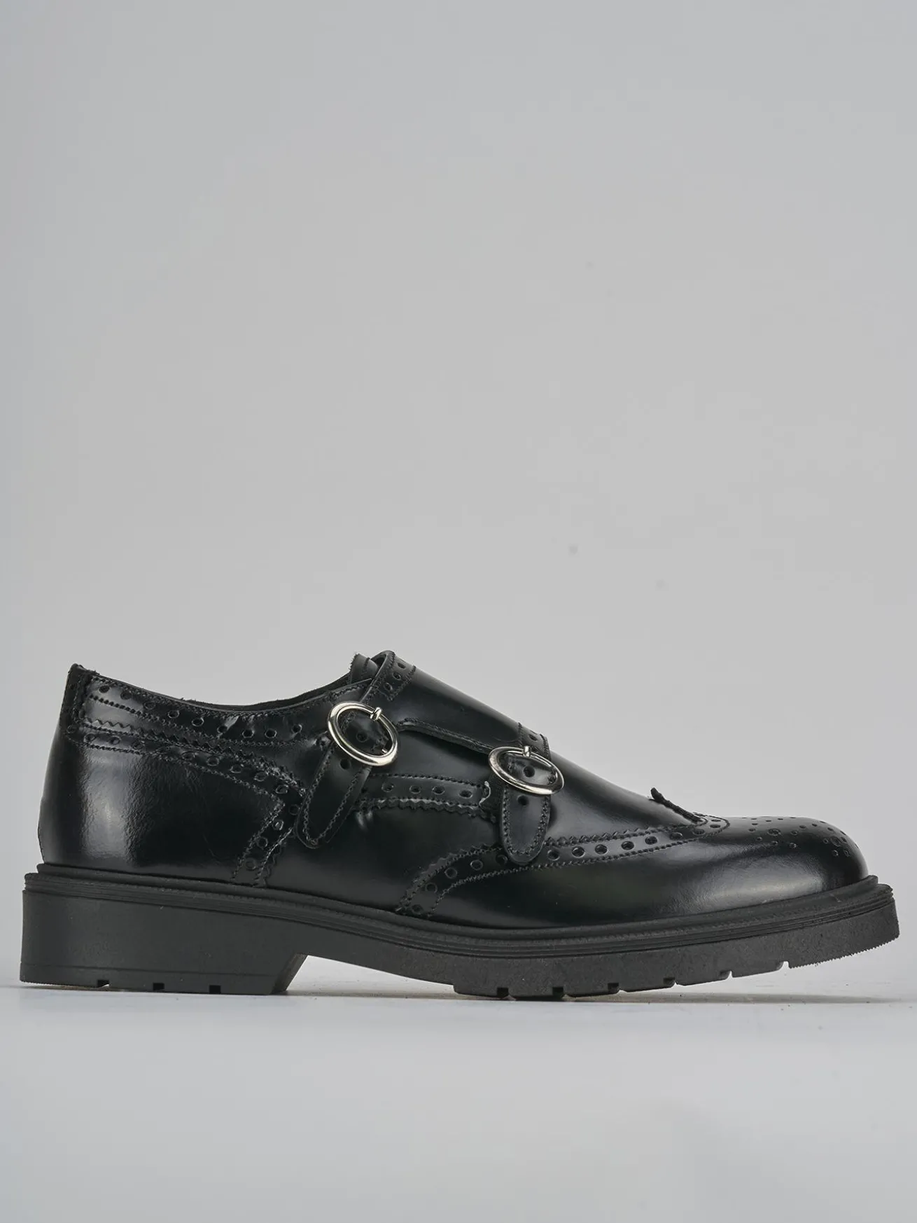 La chiusura con doppia fibbia regolabile non solo offre un look distintivo, ma anche una calzata personalizzata.