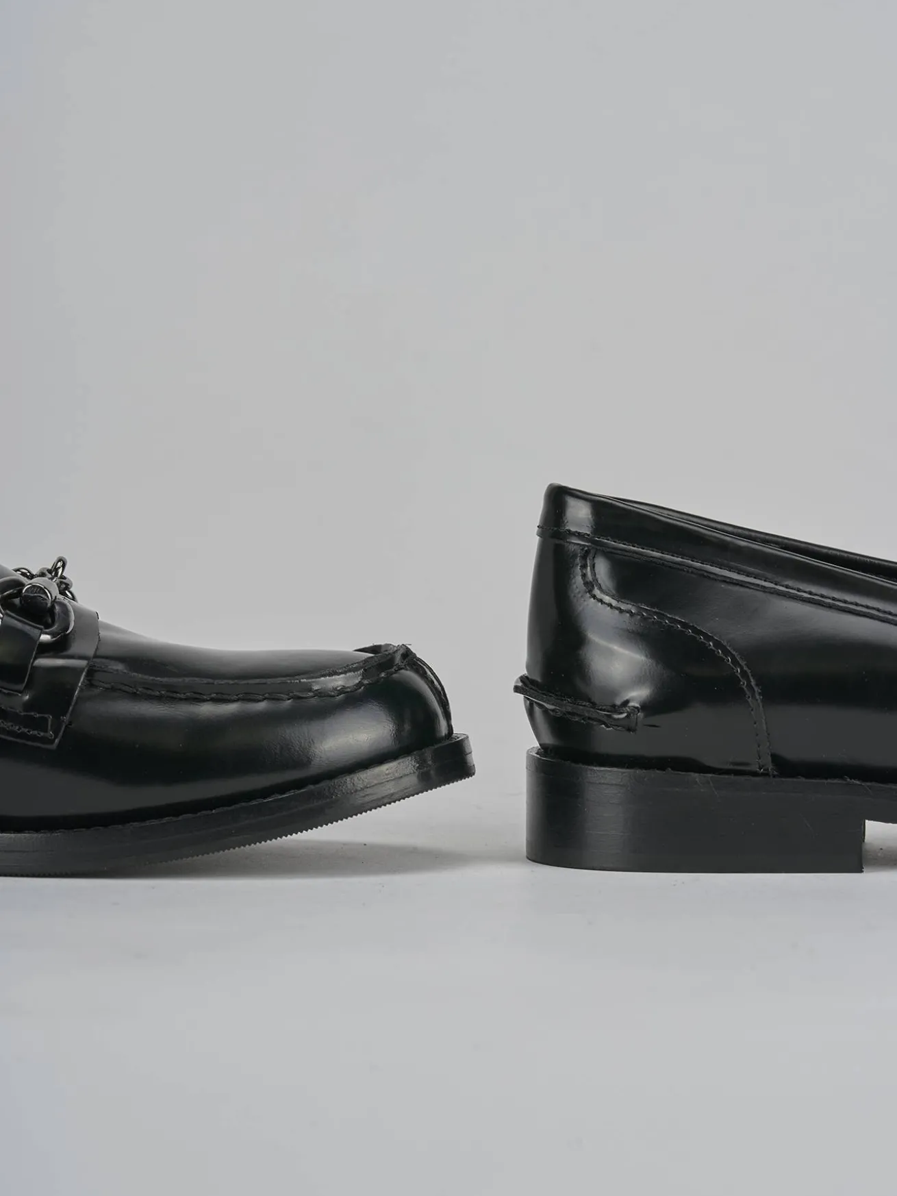 Realizzati in morbida pelle spazzolata nera, questi mocassini offrono un’eleganza senza tempo con una punta leggermente squadrata e cuciture in rilievo.