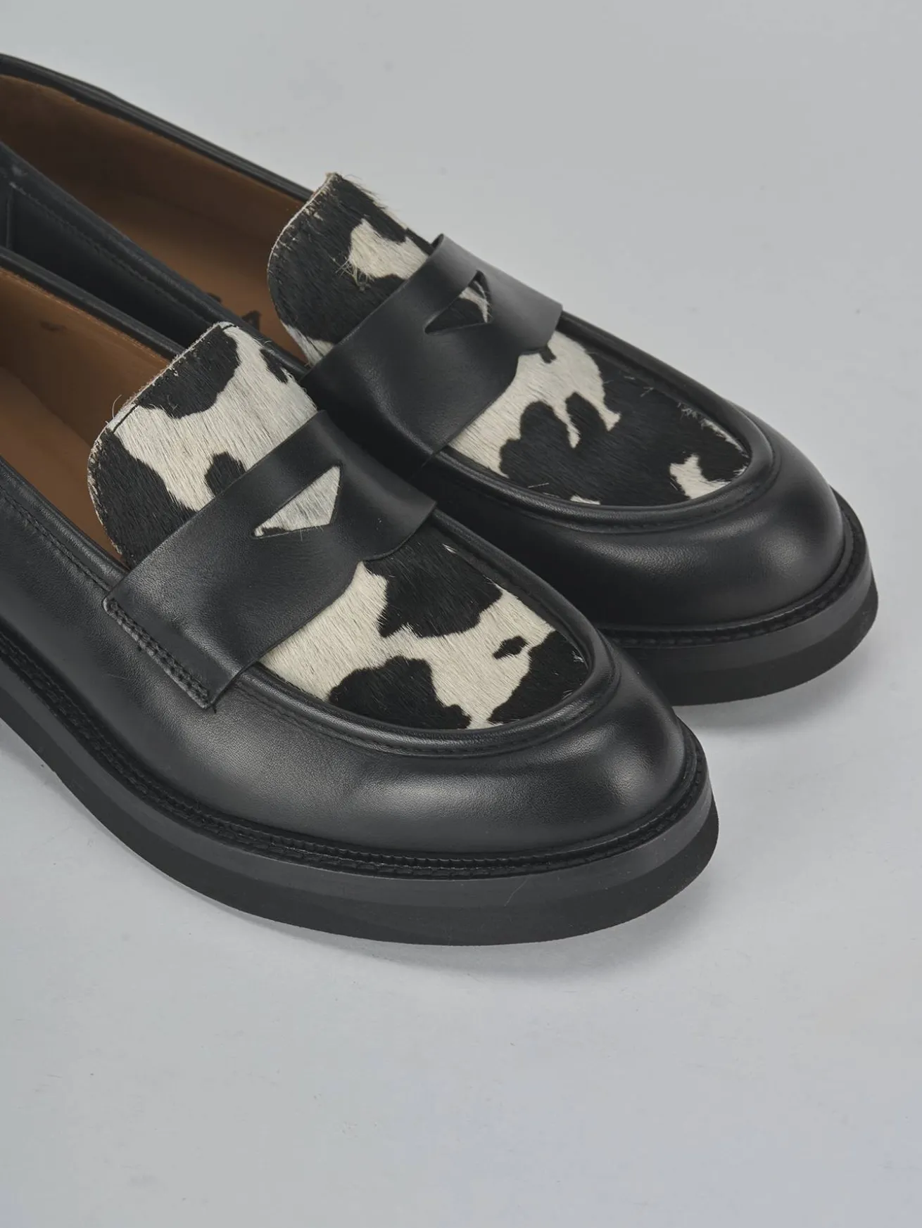 Il fondo in gomma e il soletto interno in vera pelle assicurano una calzata confortevole per tutto il giorno.
