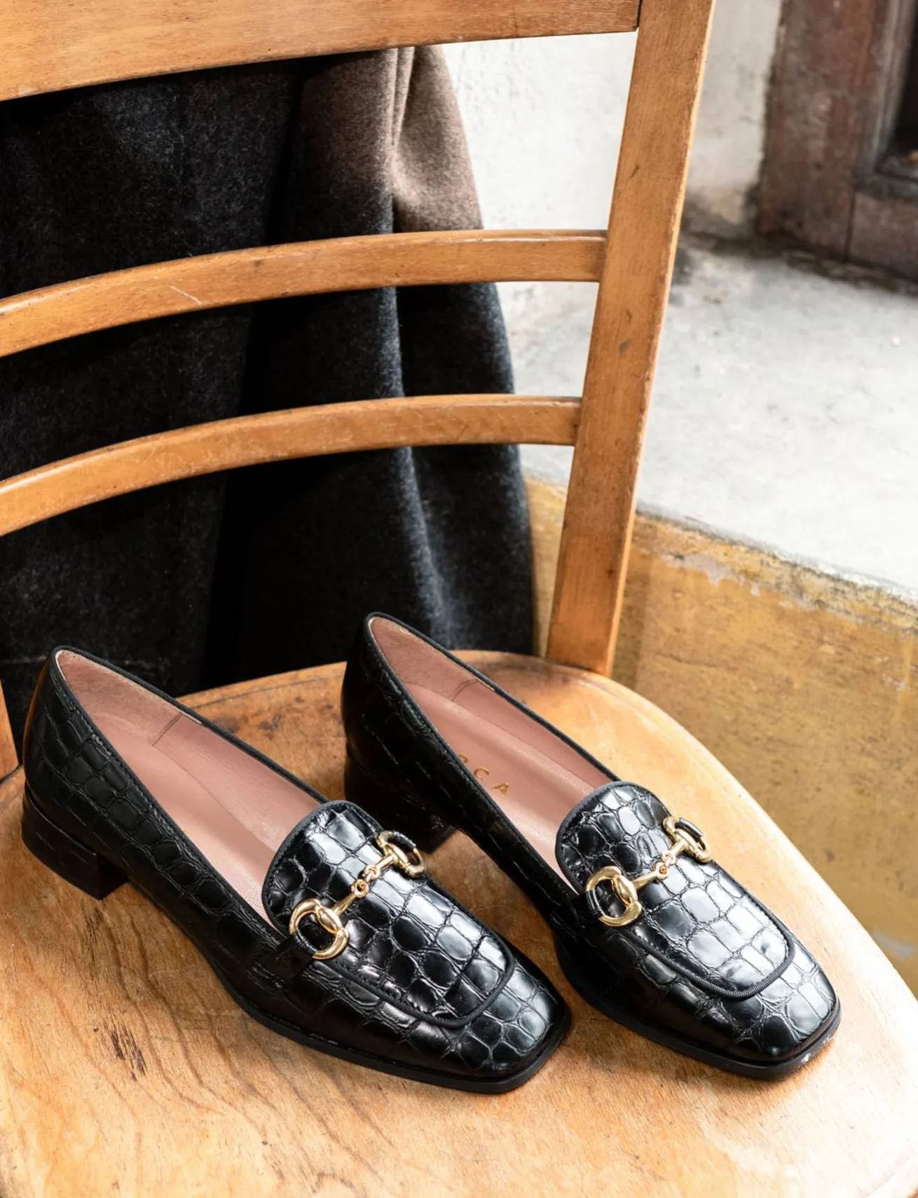 La punta squadrata e le cuciture a vista aggiungono dettagli di carattere e modernità.