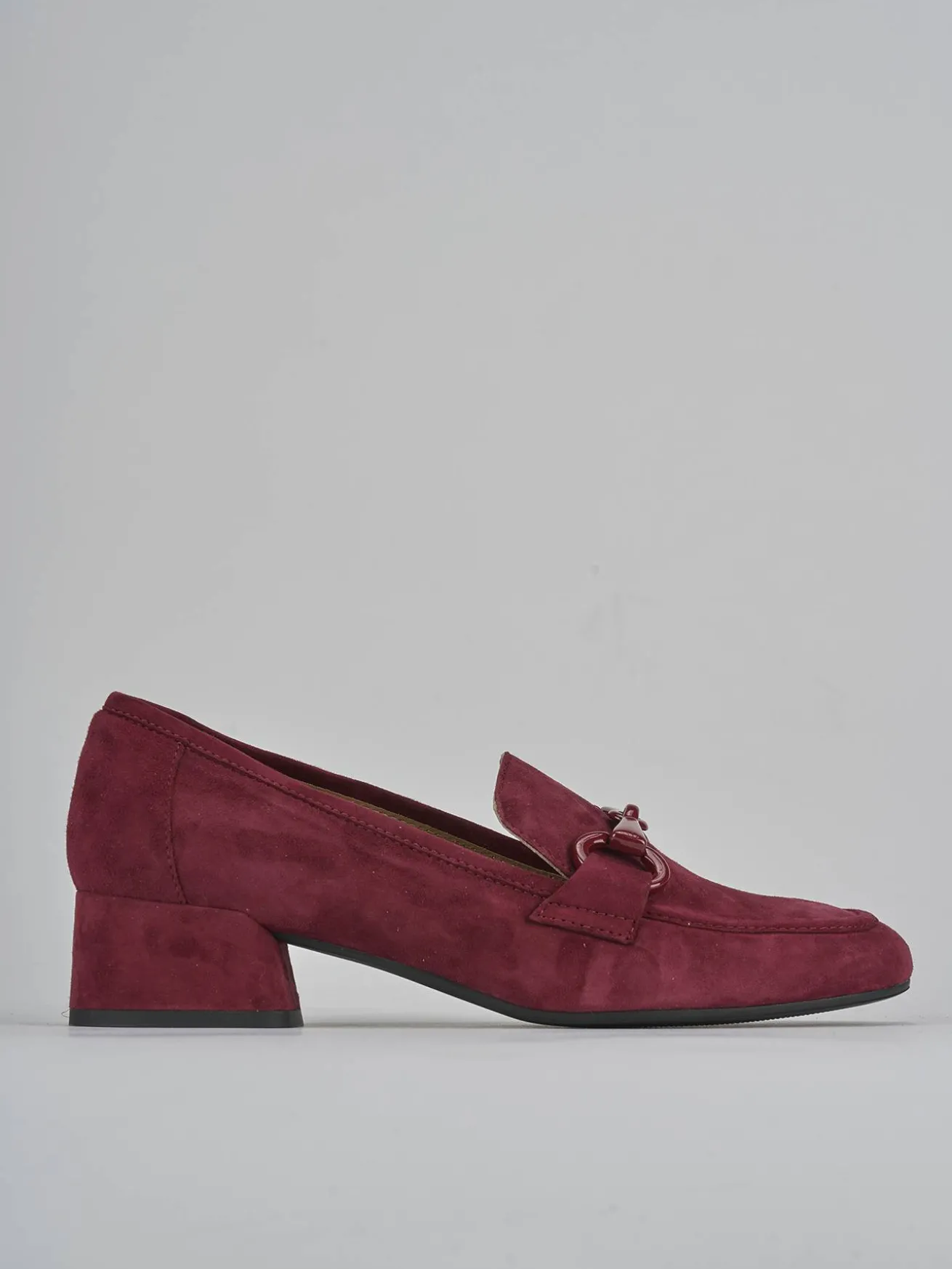 Realizzati in morbido camoscio bordò, questi mocassini si distinguono per la loro punta affusolata e le cuciture a mano a vista, che aggiungono un tocco di artigianalità.