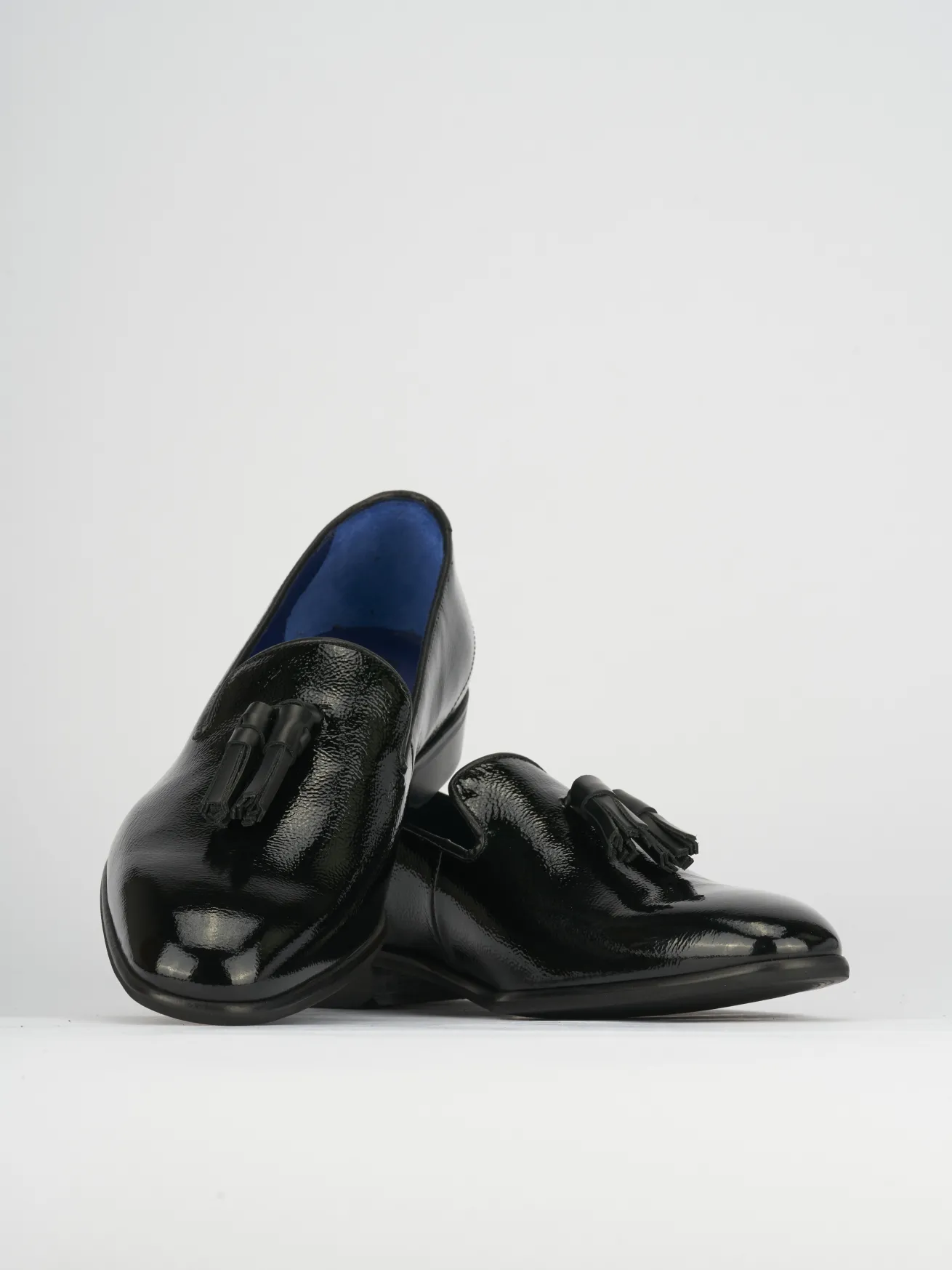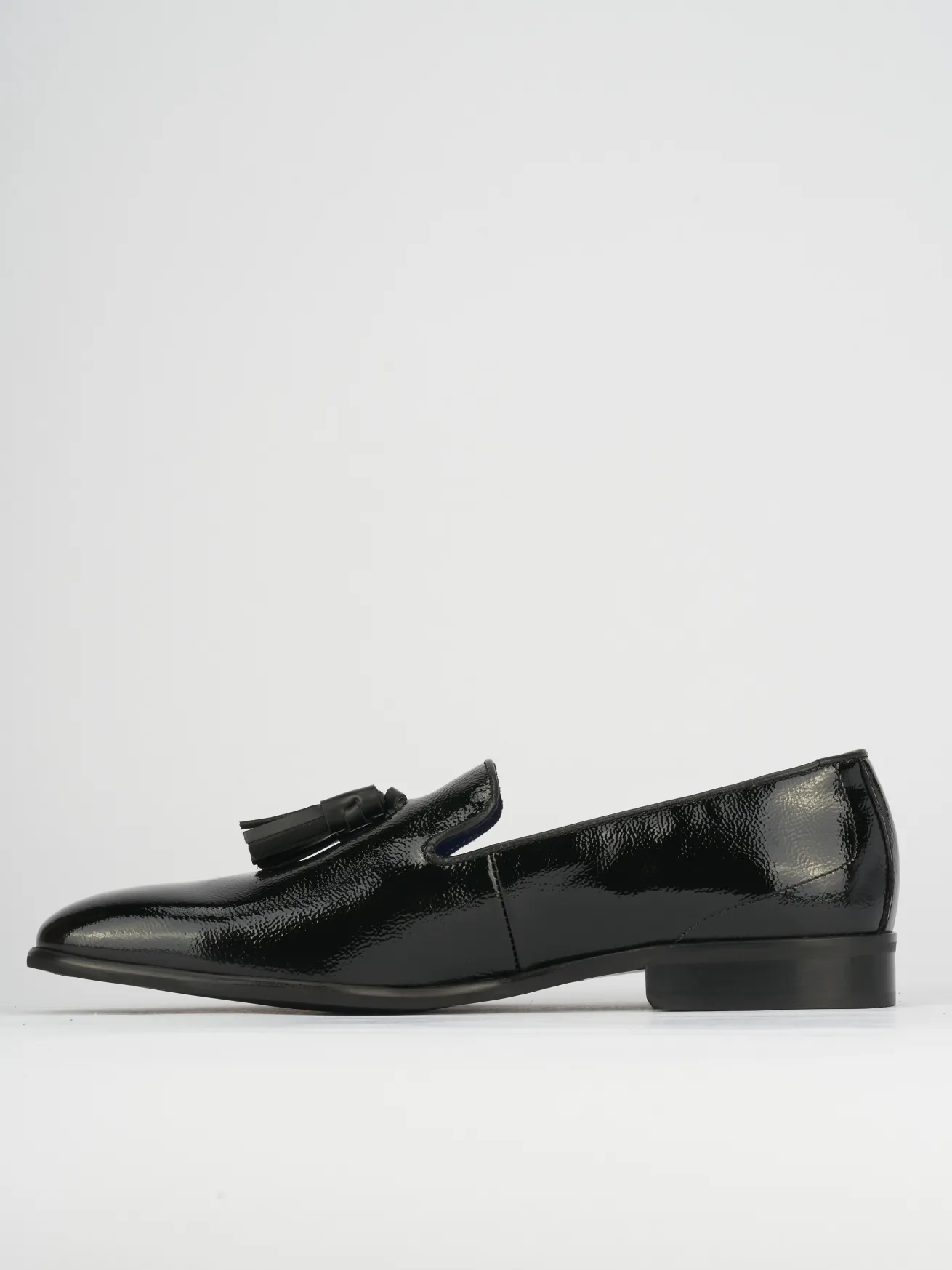 La tomaia in morbida pelle verniciata dona un aspetto raffinato, arricchito da nappine che aggiungono un tocco di classe.