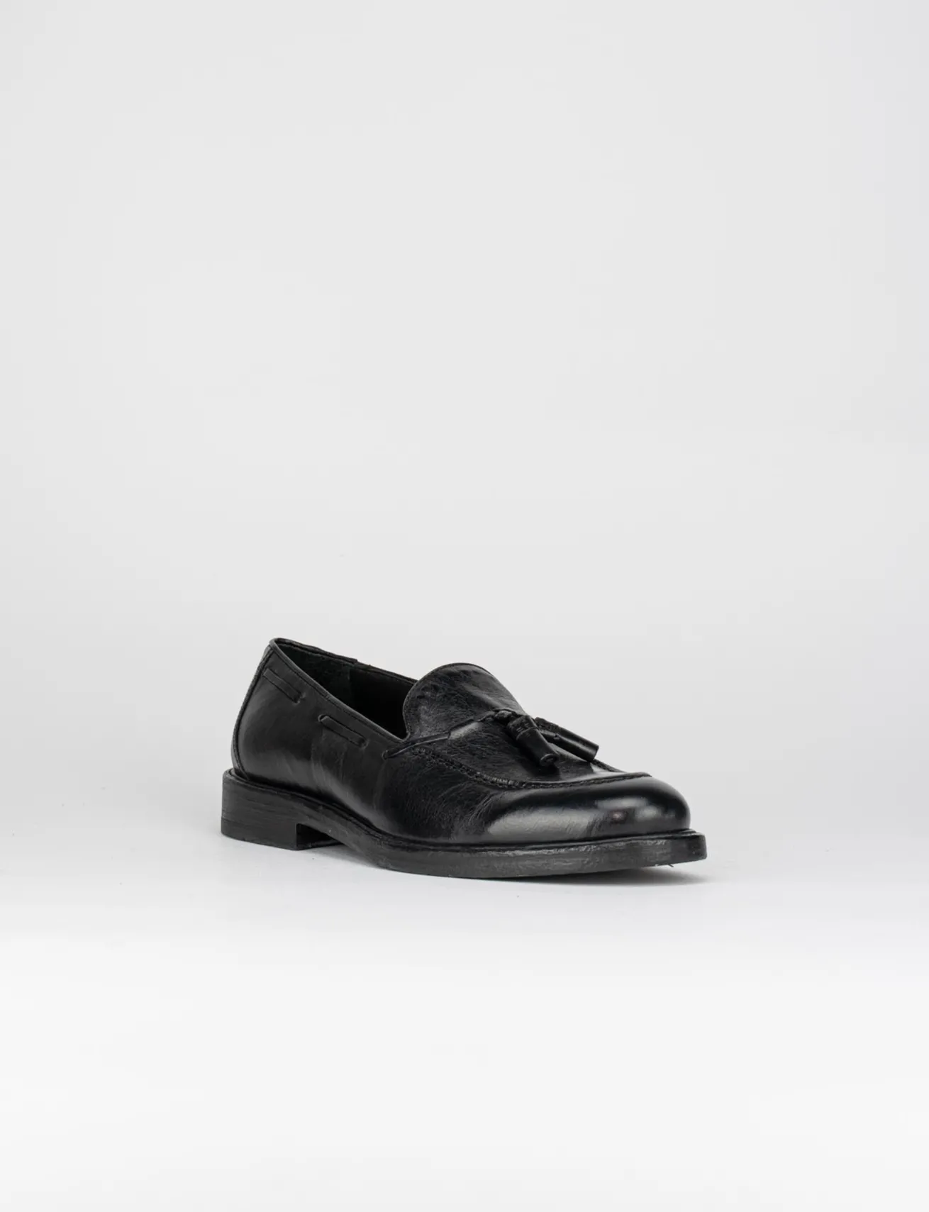 Mocassino fondo cuoio e soletto interno in vera pelle. Tomaia in morbida pelle, nappine e mascherina per un look semplice e sofisticato.