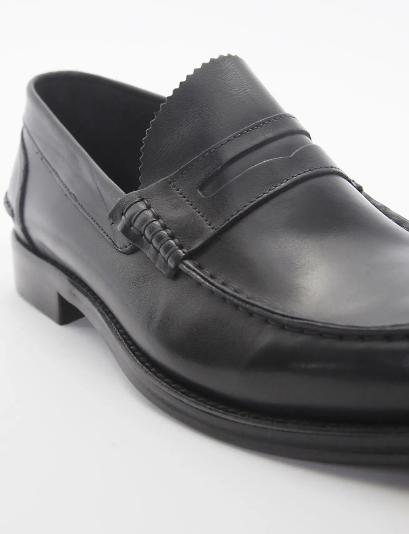 mocassino tacco 2 cm, fondo in cuoio e soletto interno in vera pelle. Tomaia in vitello lucido, modello tipo college con mascherina e cucitura sul bordo.