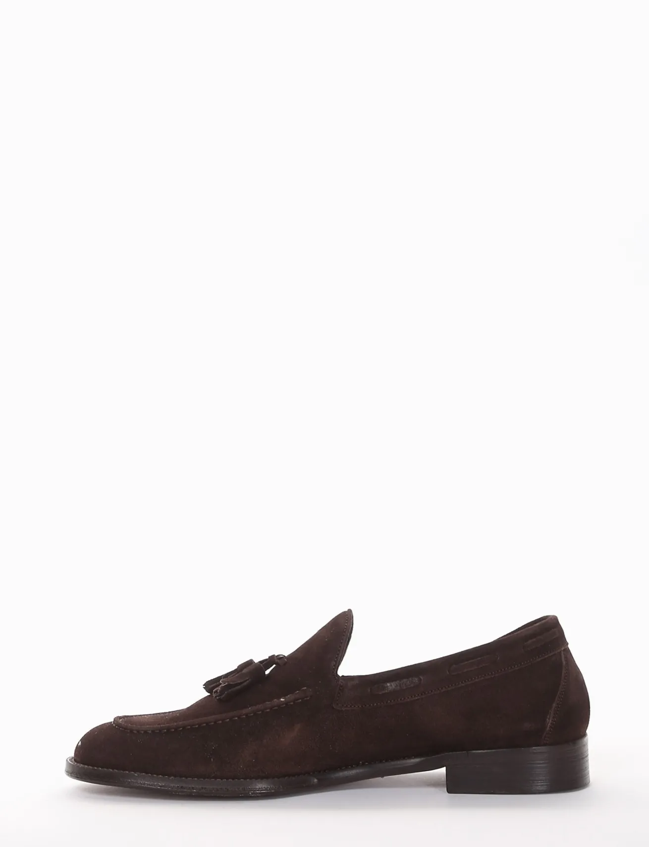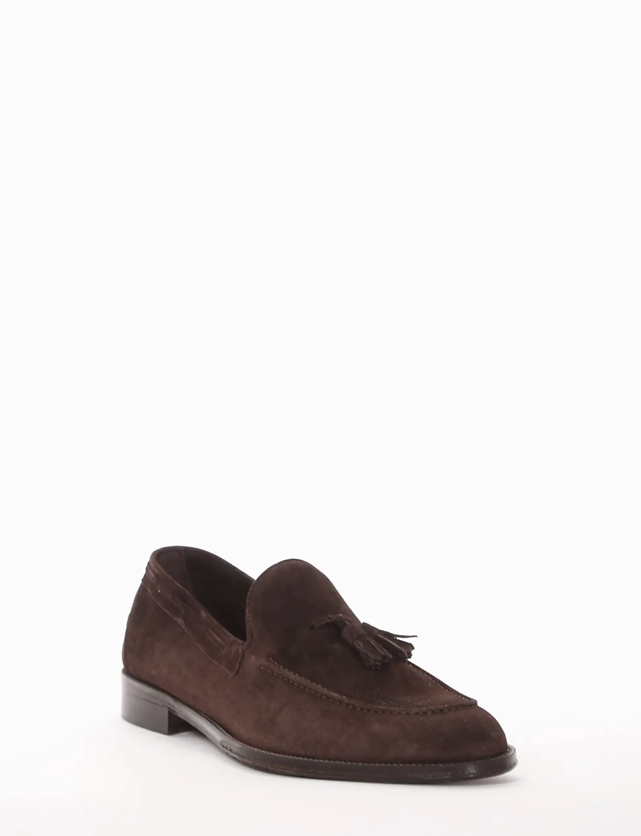 mocassino tacco 2 cm, fondo in cuoio e soletto interno in vera pelle. Tomaia in morbido camoscio, particolarissima nappina sul collo del piede.