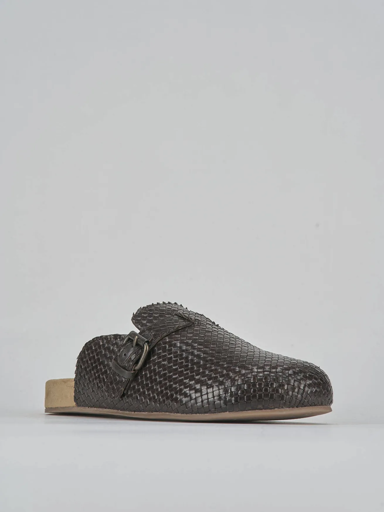 La tomaia è realizzata in morbida pelle intrecciata, con una punta affusolata che aggiunge un tocco elegante e moderno.