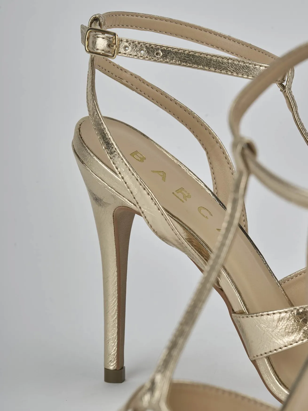 Realizzato in morbida pelle laminata color oro, questo sandalo cattura l’attenzione con il suo design elegante e sofisticato.