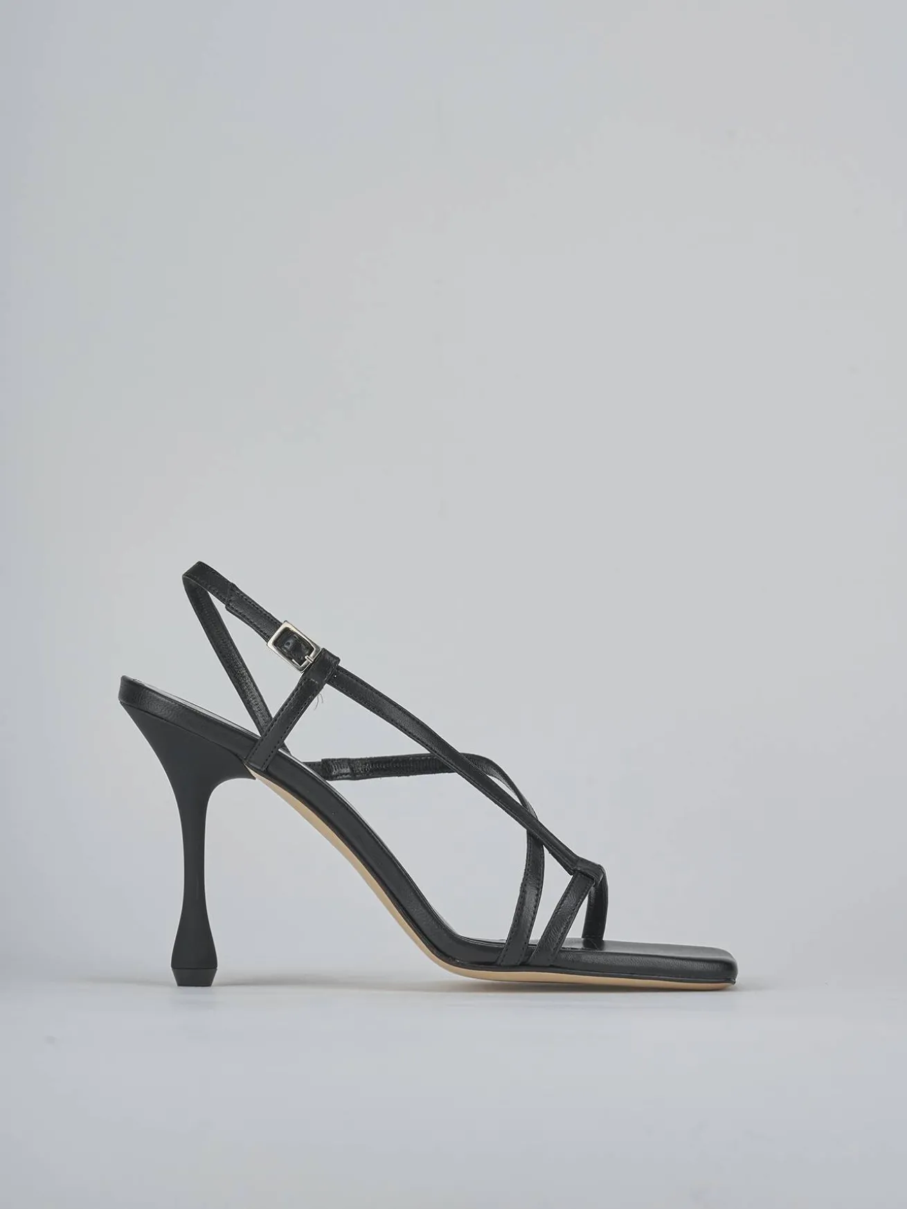 La punta squadrata e le fascette incrociate aggiungono un tocco moderno e sofisticato.