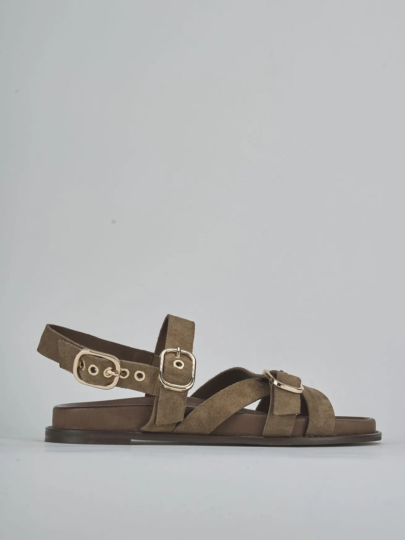 La tomaia in morbido camoscio avvolge il piede con delicatezza, mentre le fasce incrociate in punta aggiungono un tocco di stile raffinato.