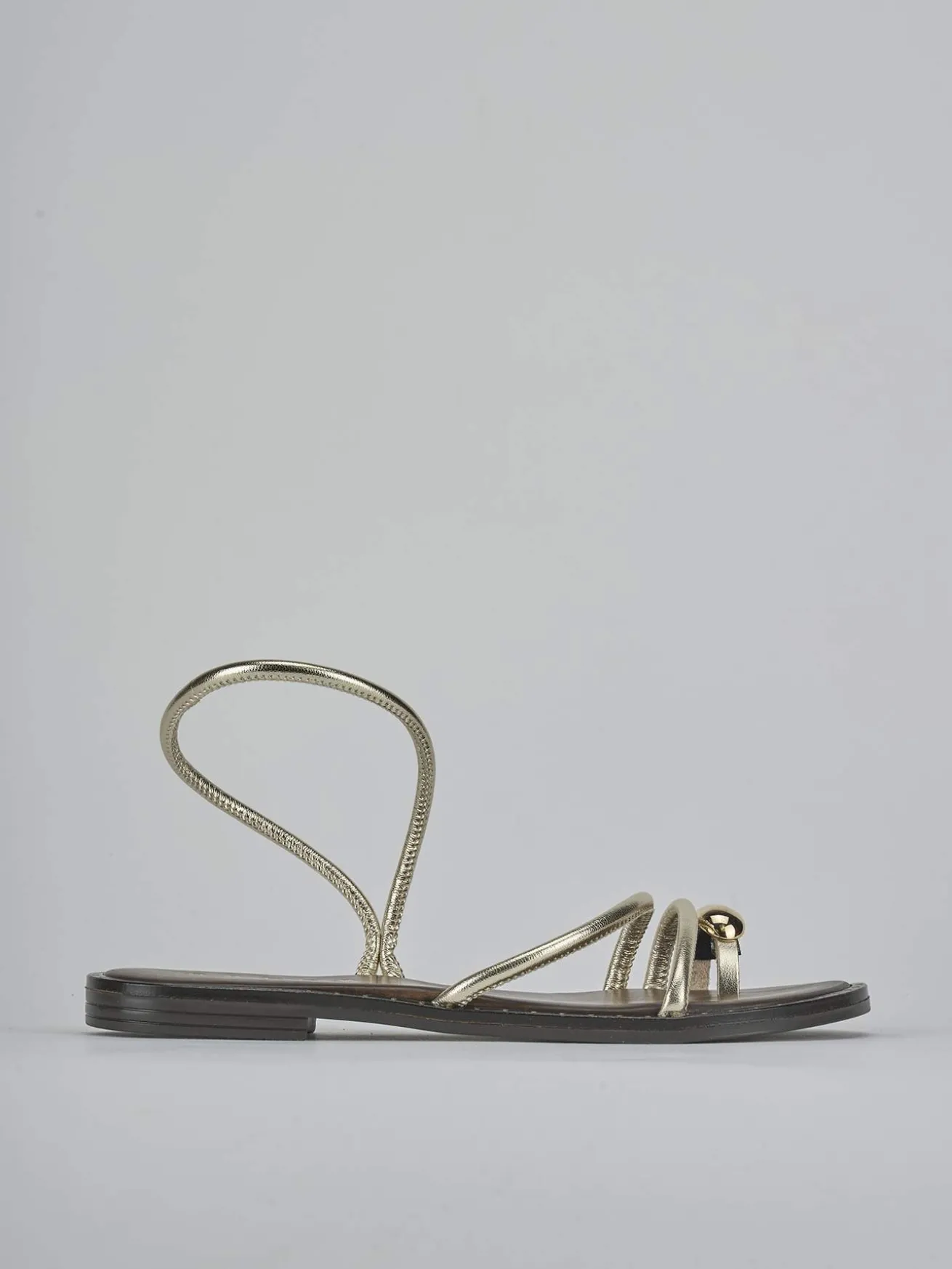 Realizzati in un raffinato laminato color oro, questi sandali sono un must-have per la donna moderna che non vuole rinunciare al comfort.