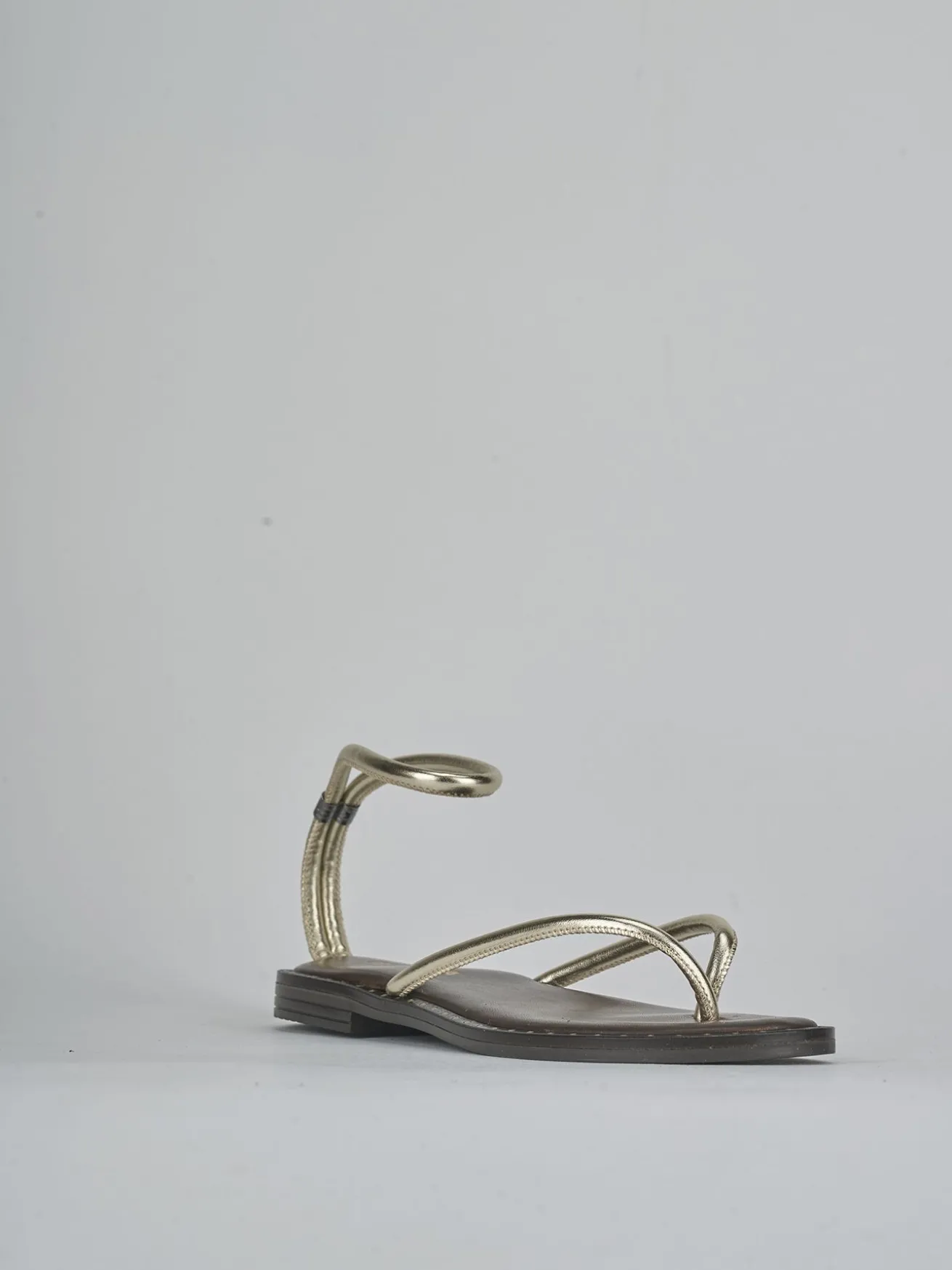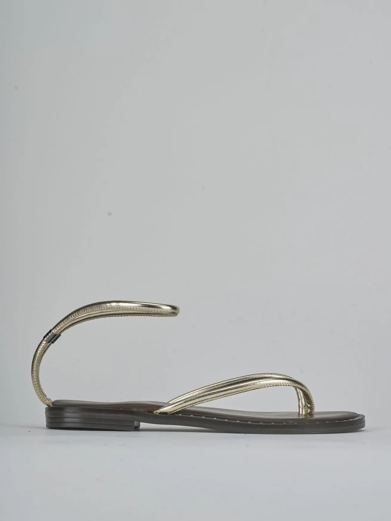 Questi sandali con tacco di 1 cm sono realizzati in un raffinato laminato oro, perfetti per aggiungere un tocco di lusso al tuo look quotidiano.