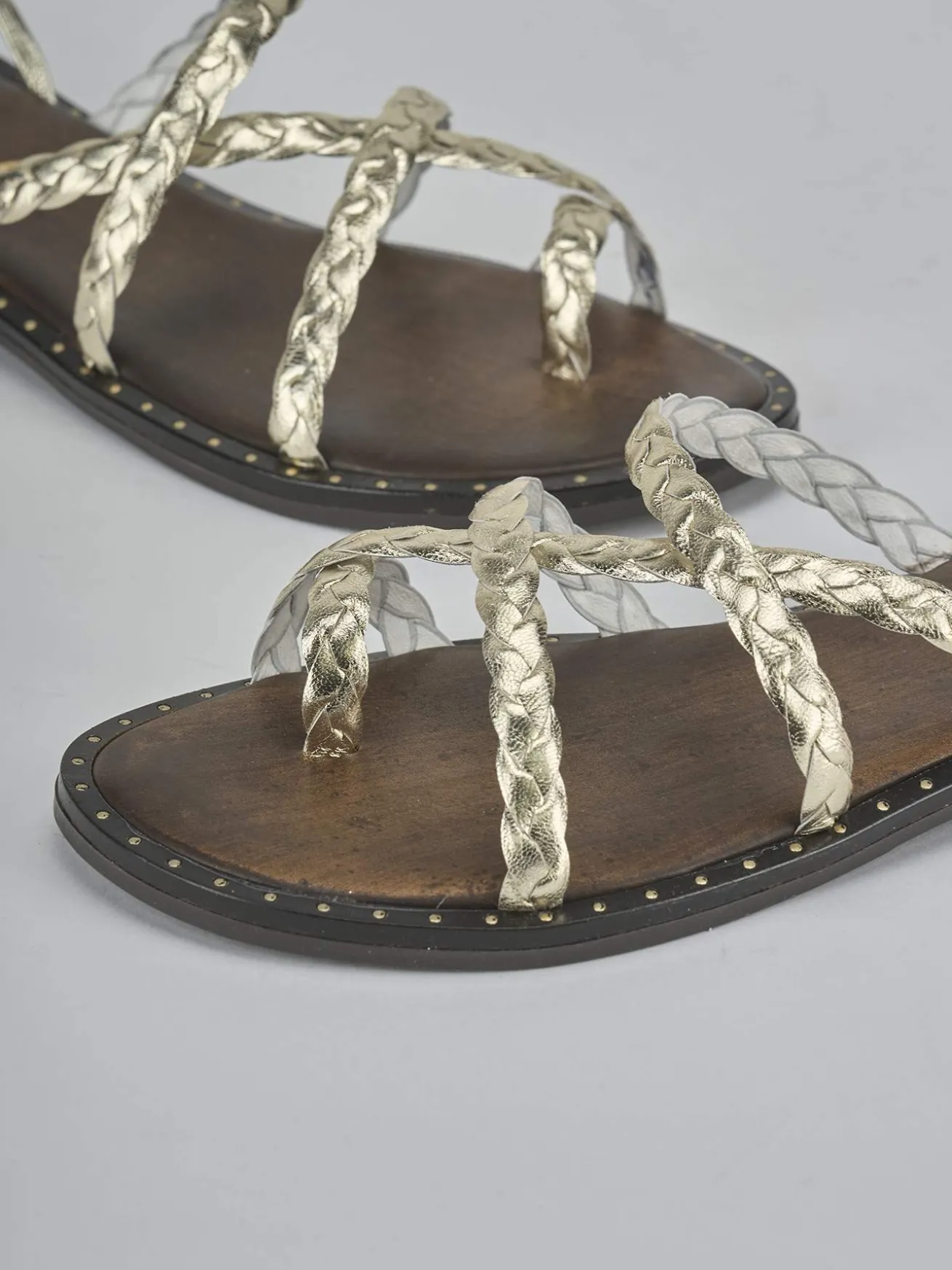 Con un tacco di 1 cm, questi sandali laminati oro sono l’ideale per un look chic-cool, adatto a ogni occasione.