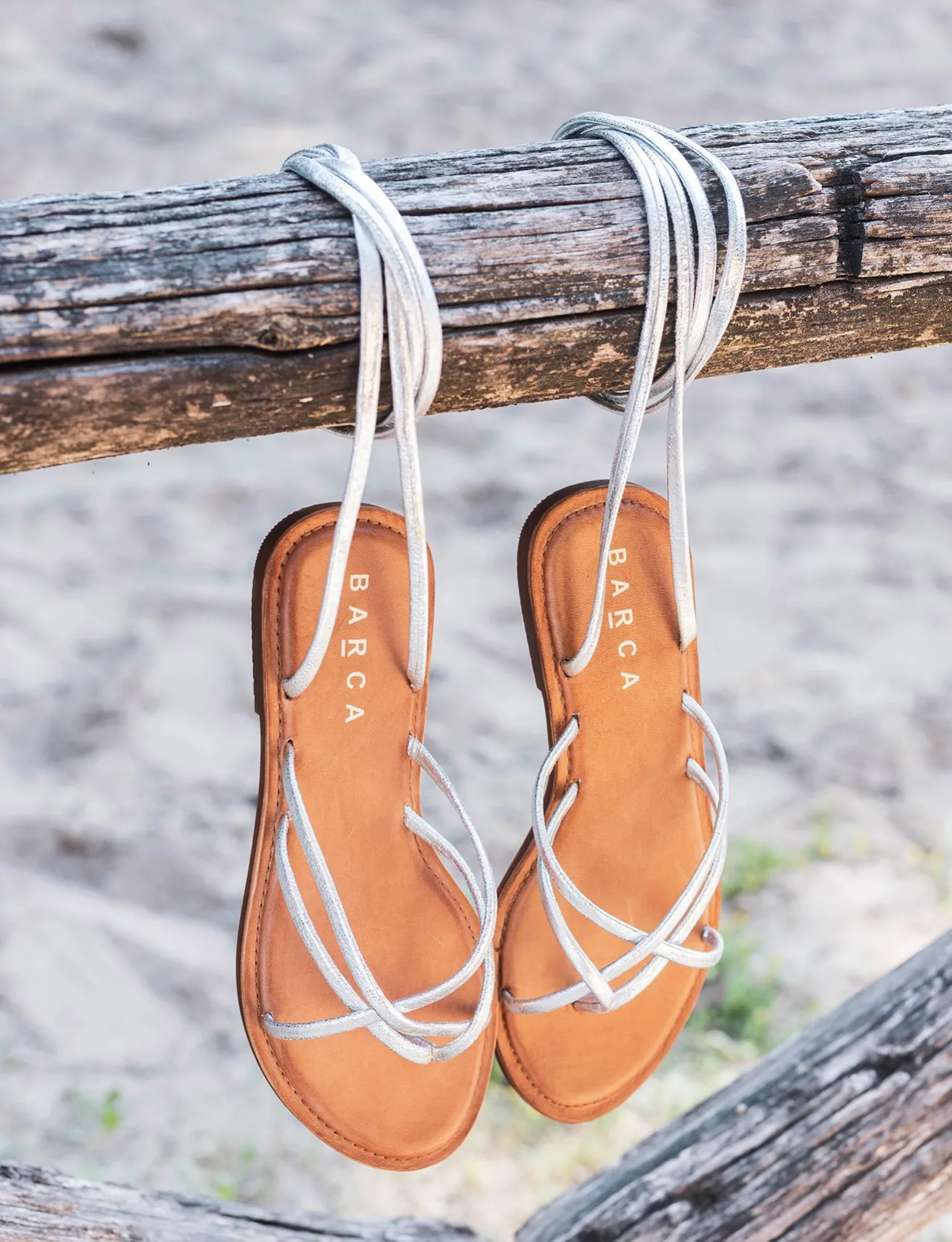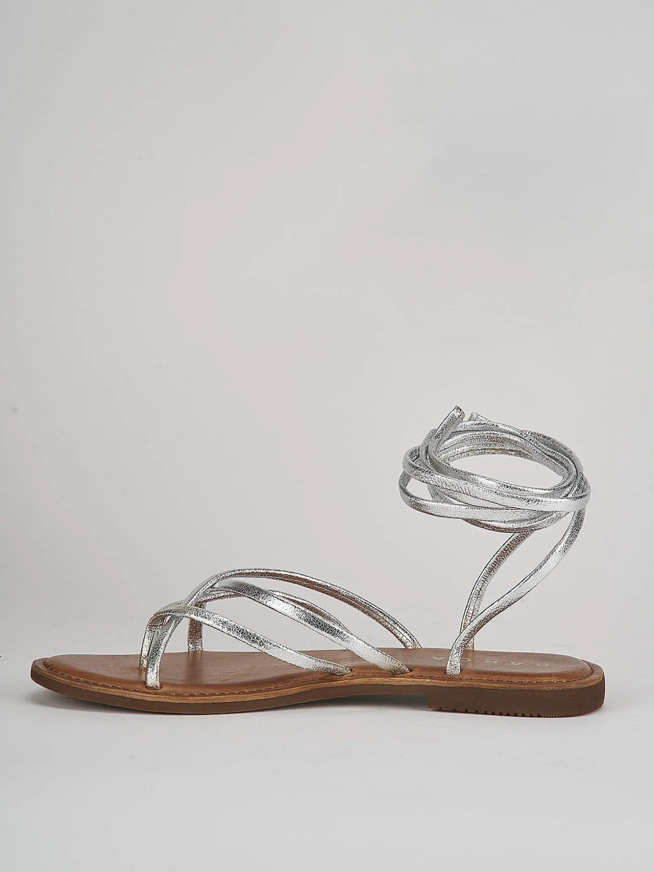 Le minifascette intersecate e l’infradito aggiungono un tocco di classe, mentre l’allacciatura con triplo giro a schiava alla caviglia garantisce un look sofisticato e stabile.