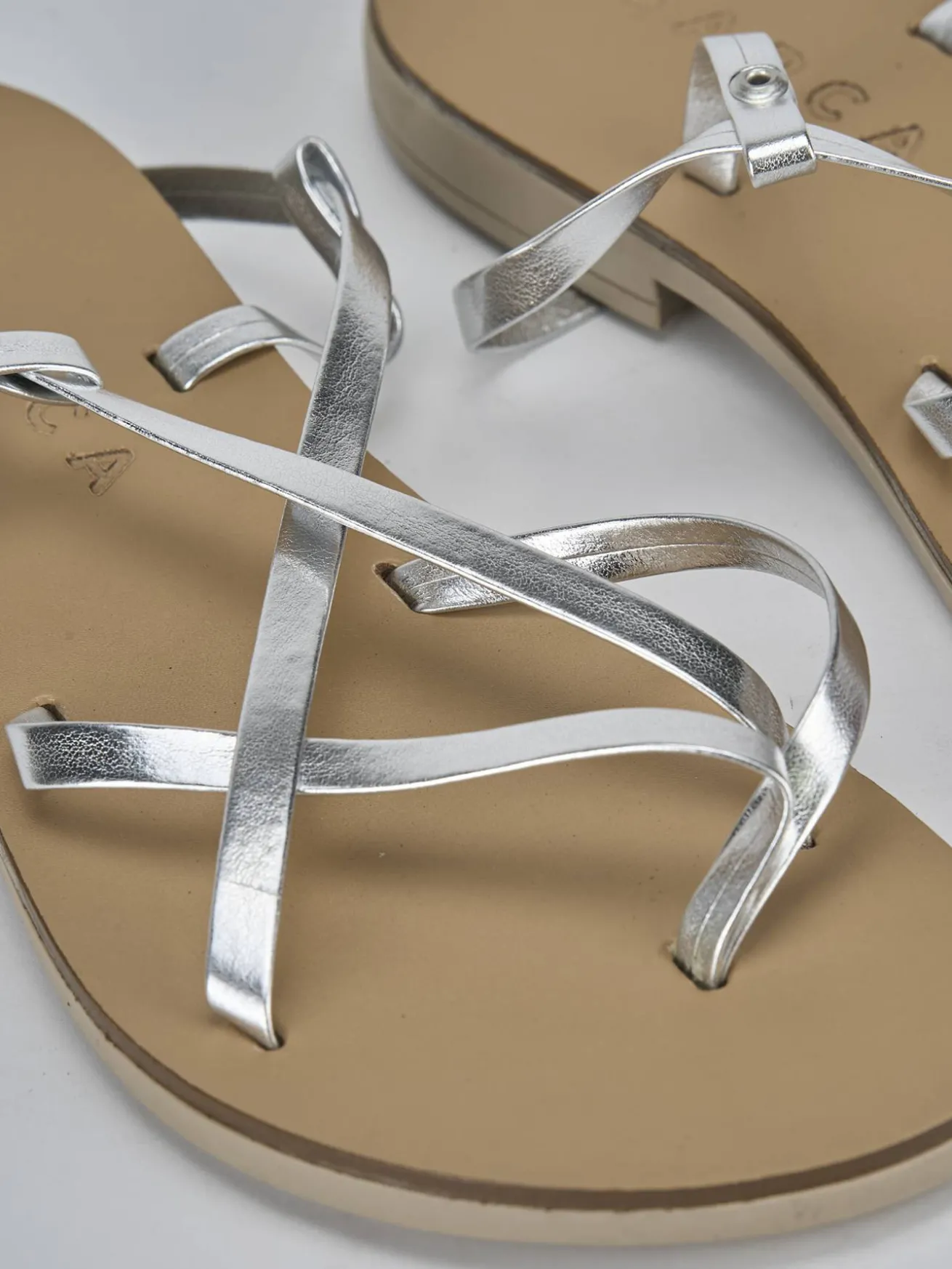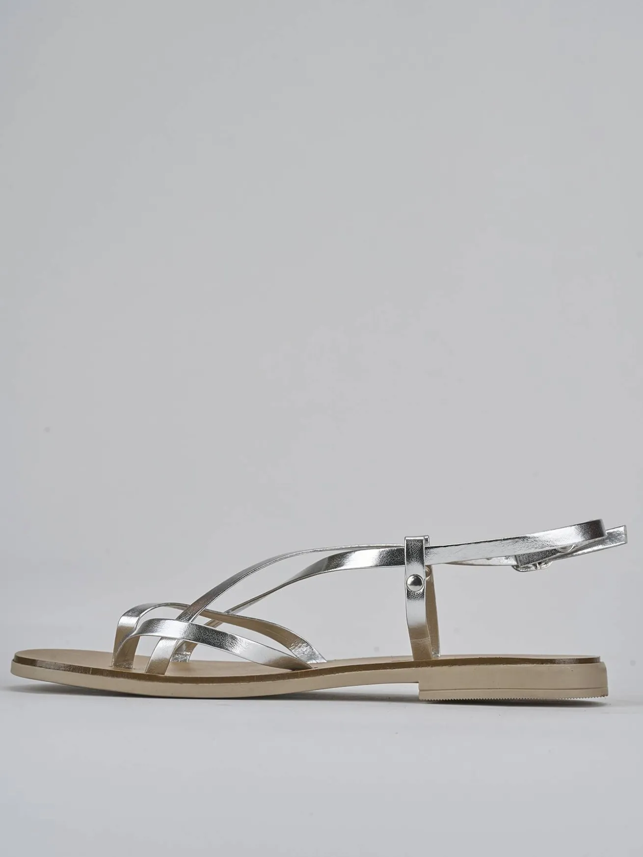 Realizzati in pelle laminata color argento, questi sandali sono una scelta versatile e raffinata per ogni occasione.