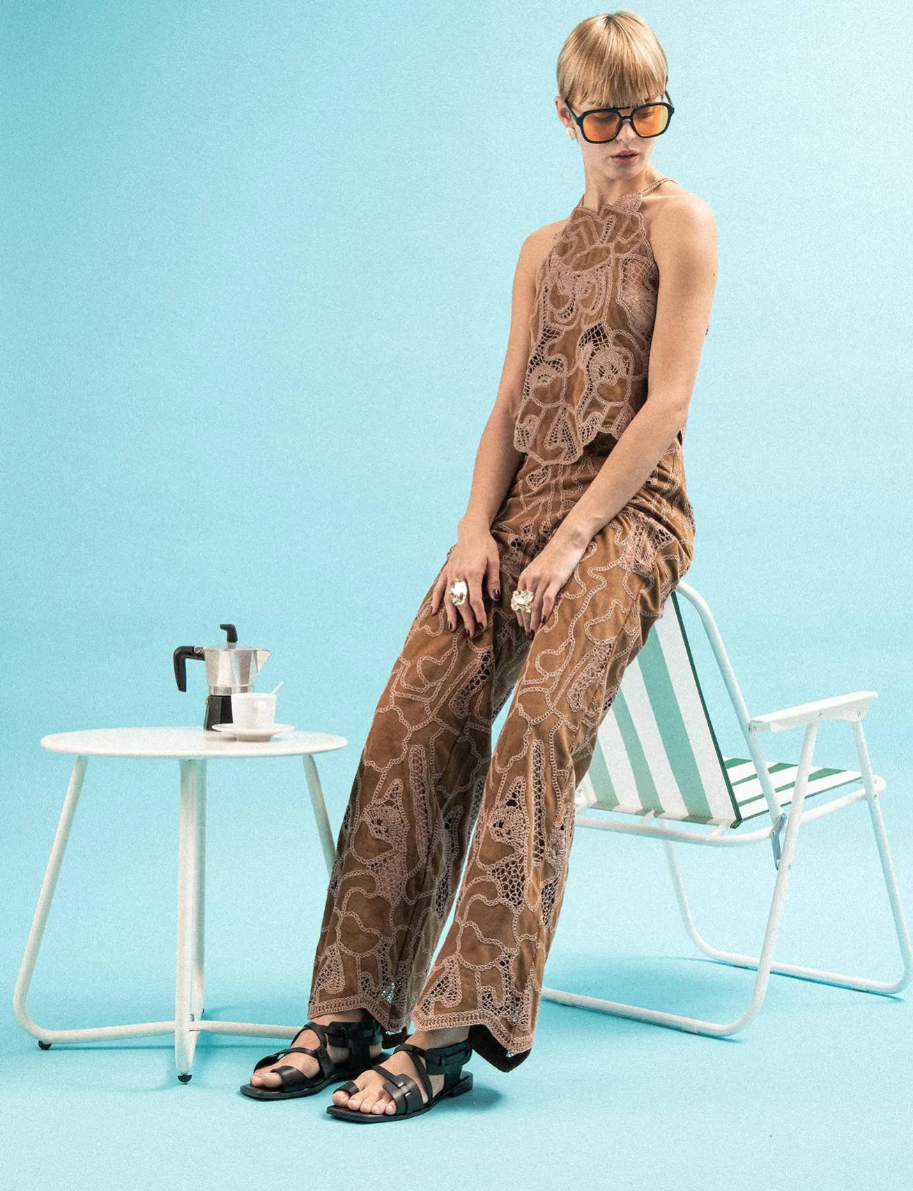 La tomaia in morbida pelle presenta una punta squadrata e fasce intrecciate sul collo del piede, aggiungendo un tocco di raffinatezza.