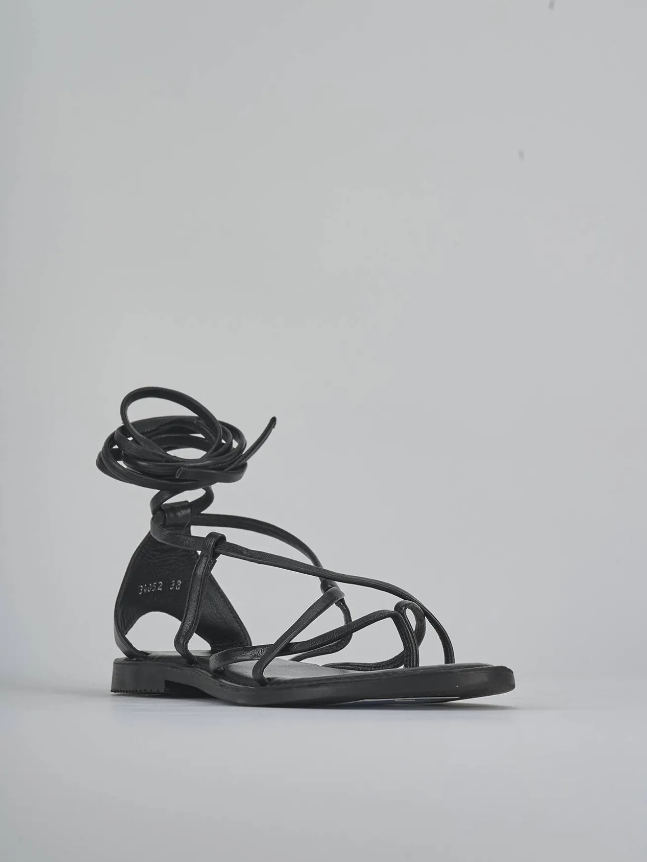 La tomaia è realizzata in morbida pelle nera, con fascette incrociate che donano un tocco sofisticato.