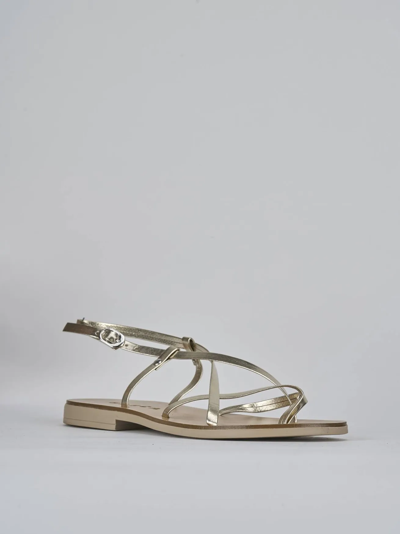 La tomaia è realizzata in morbida pelle con sottili fascette incrociate che conferiscono un look cool e sofisticato.