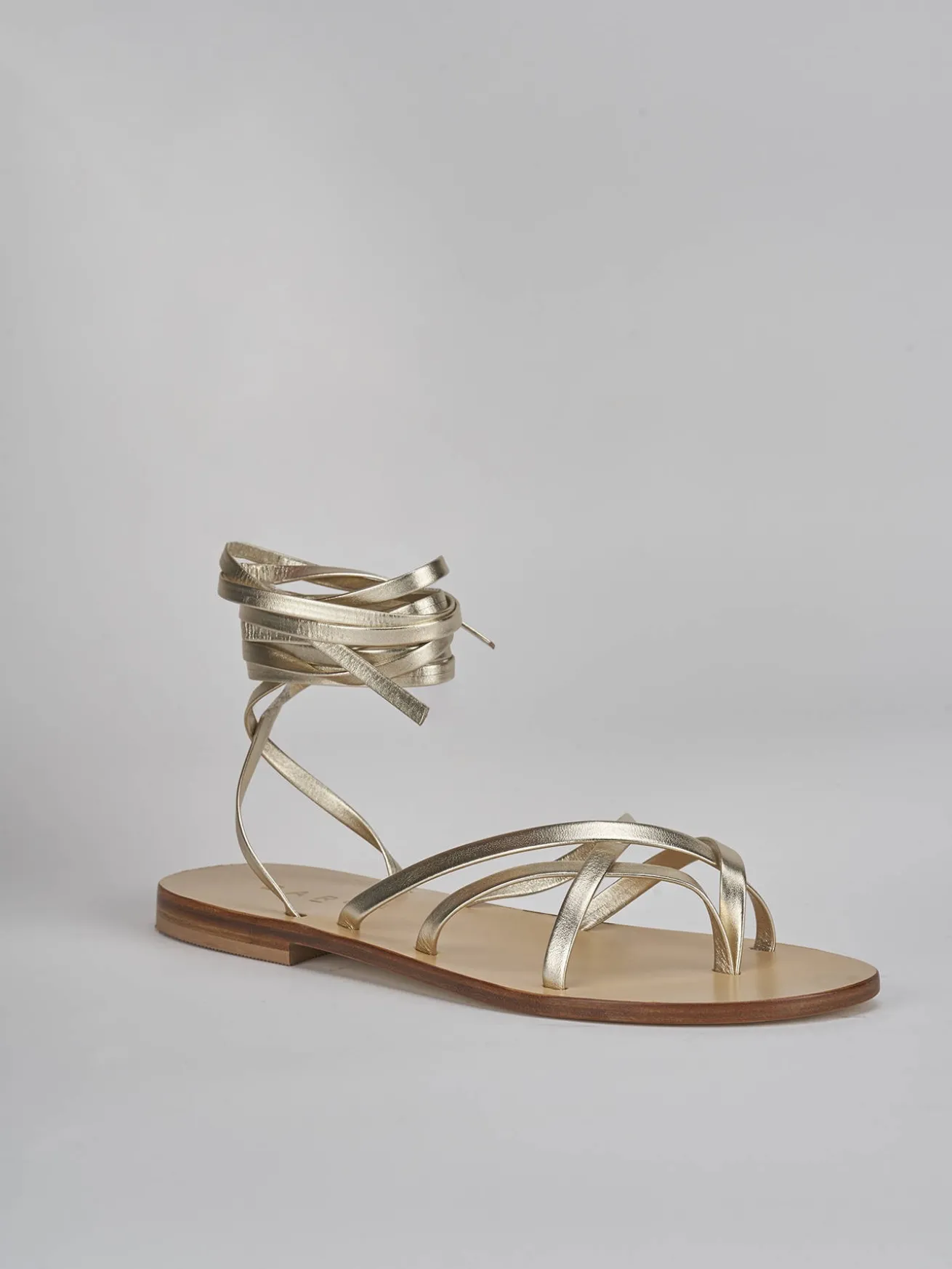 Realizzato in pelle color oro, questo sandalo infradito è sinonimo di eleganza e comodità.