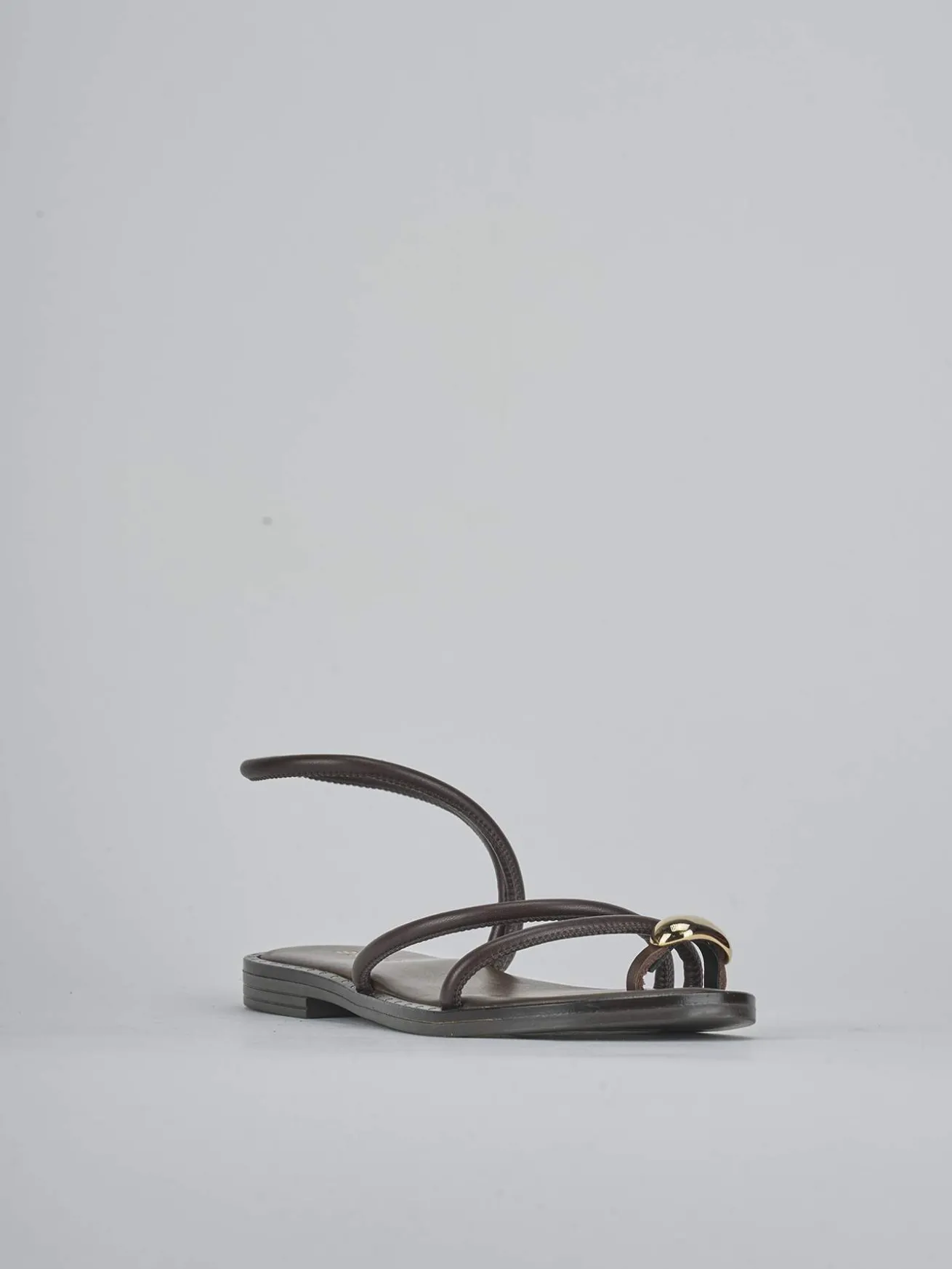 La tomaia è in morbida pelle, con una punta affusolata e un design infradito ad anello arricchito da un elegante accessorio.