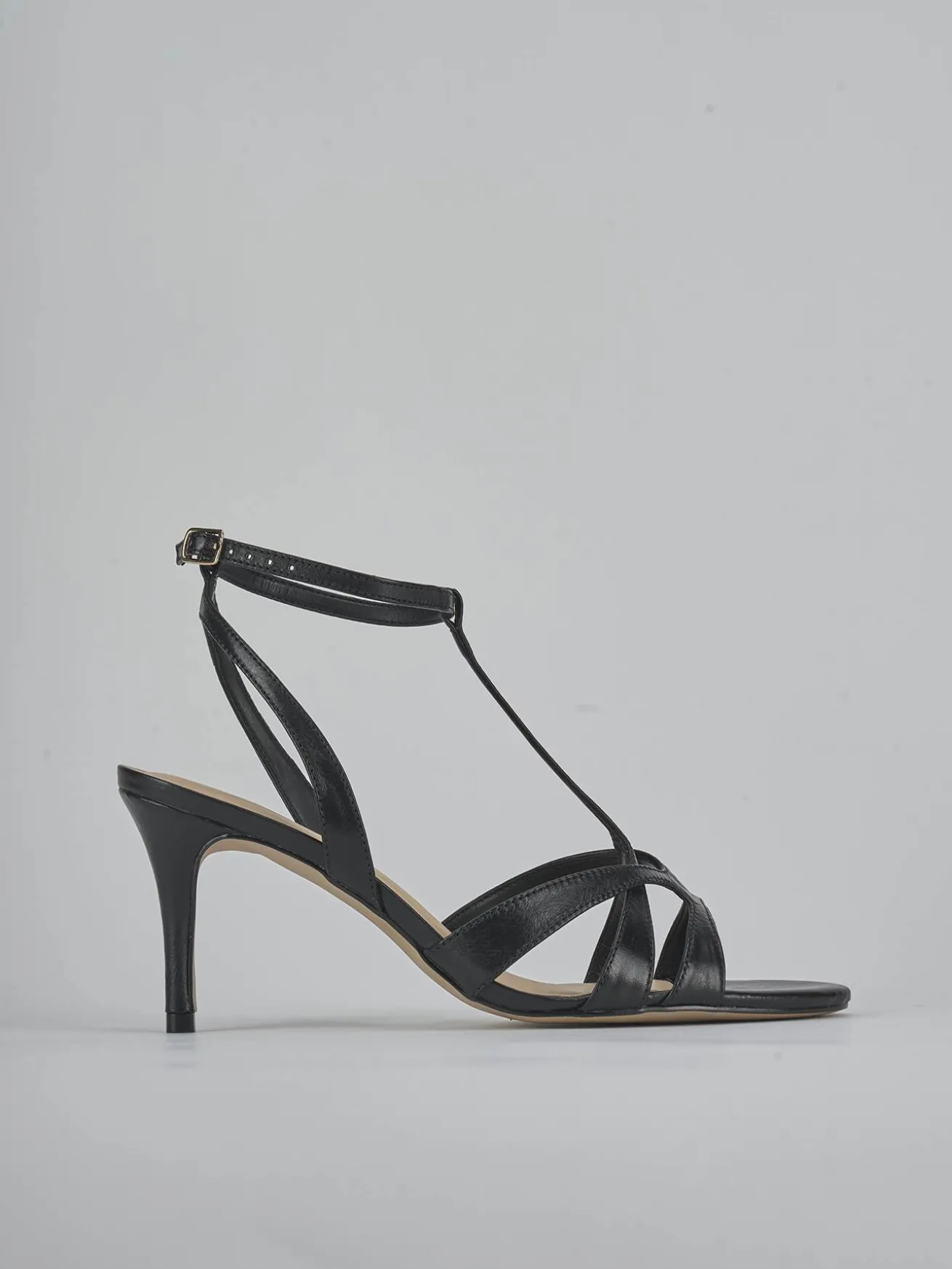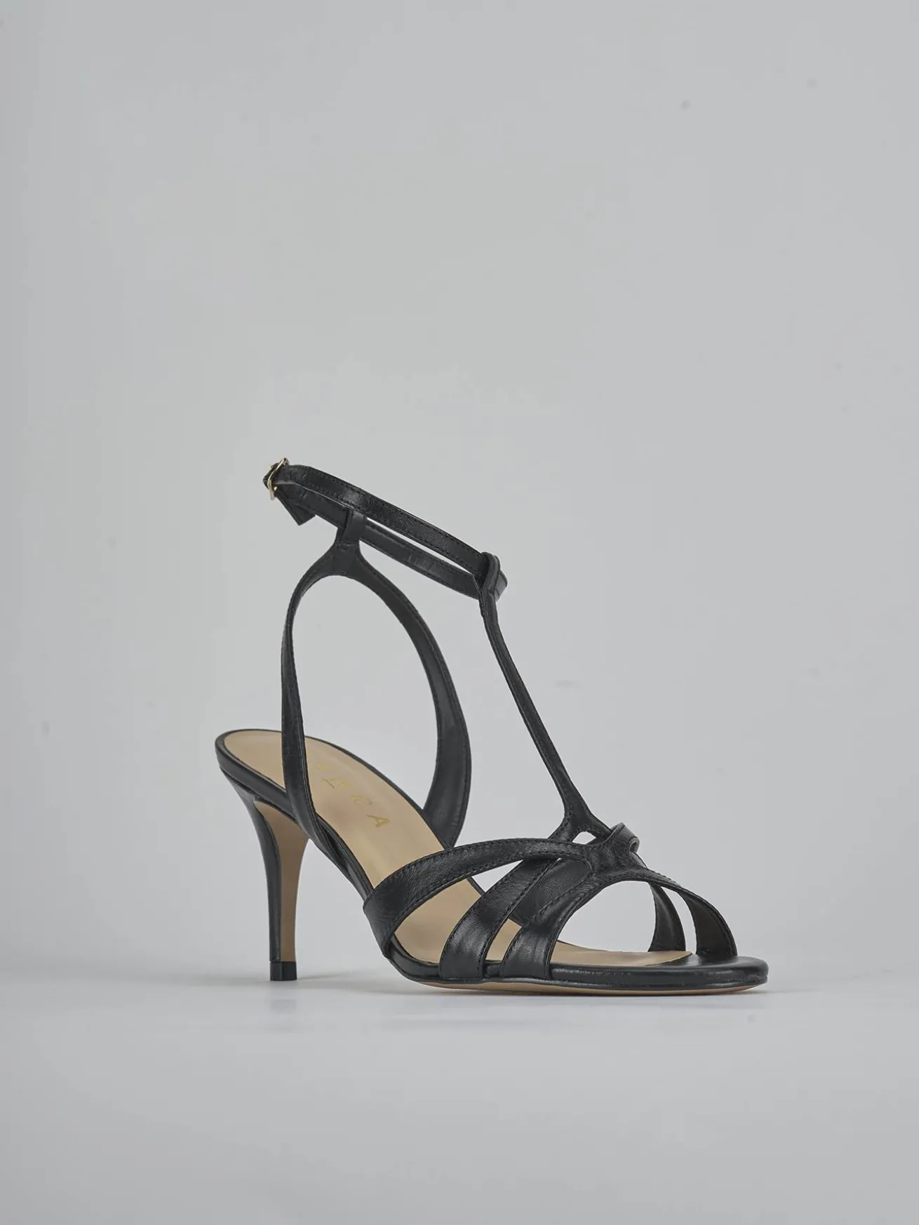 Sandalo tacco 6 cm fondo in leggerissima gomma e soletto interno in vera pelle. Tomaia in morbida pelle, punta affusolata, fascette e cinturino a ‘T’ con fibbia regolabile e nuovissimo tacco rocchetto per un look chic. Ideale anche come sandalo cerimonia per le tue occasioni piu’ importanti.