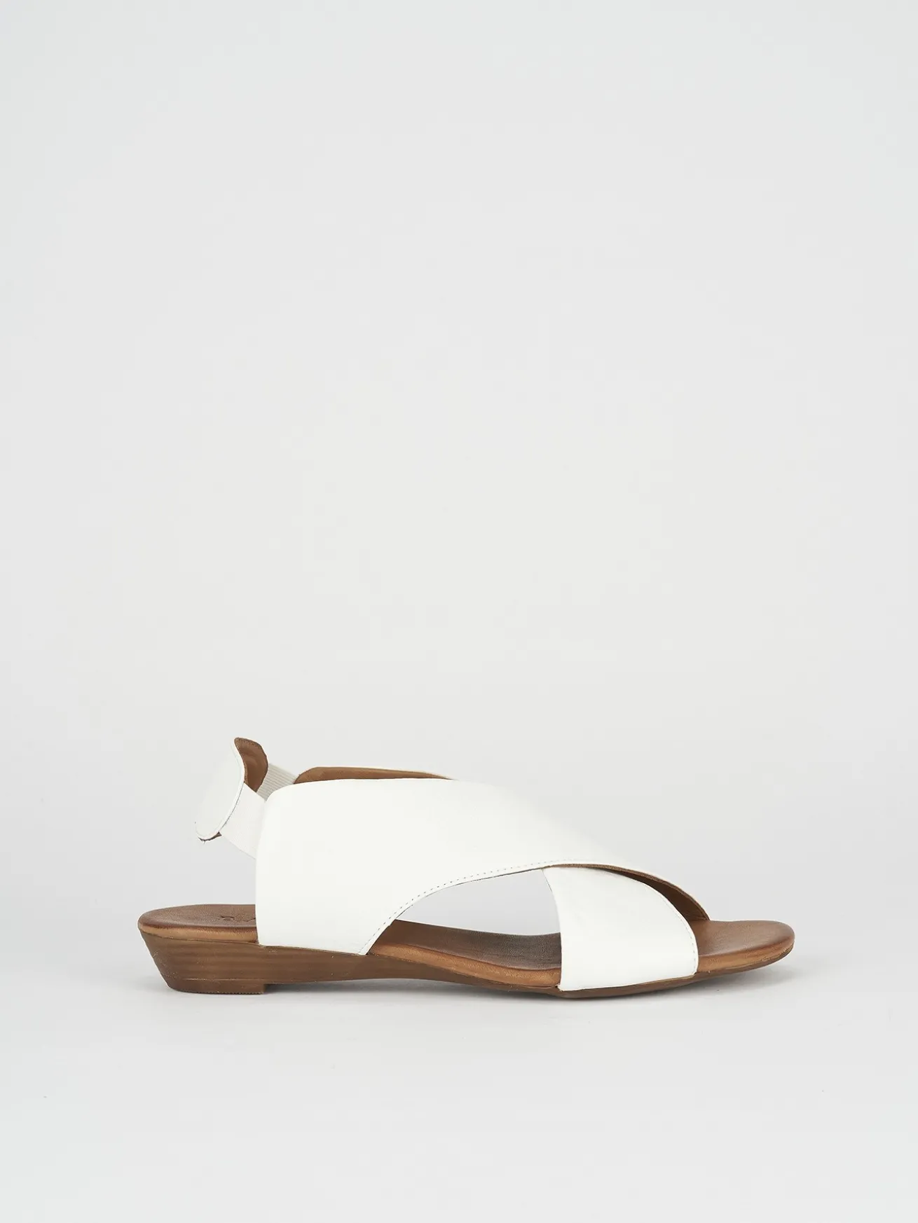 sandalo zeppa 3 cm fondo in leggerissima gomma e soletto interno in vera pelle. tomaia in morbida pelle, con fasce incrociate e comodissimo slingback elasticizzato per una calzata veloce.