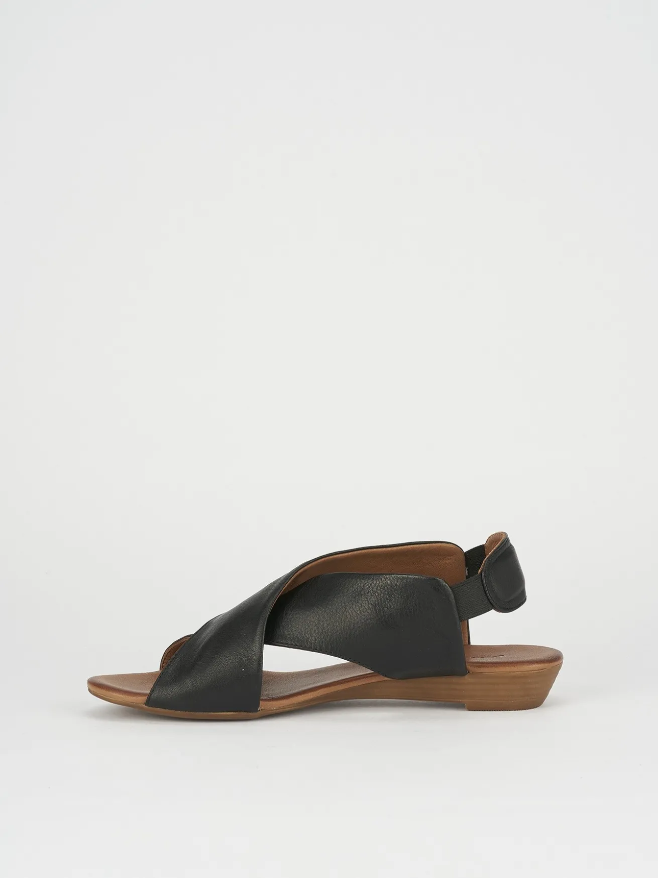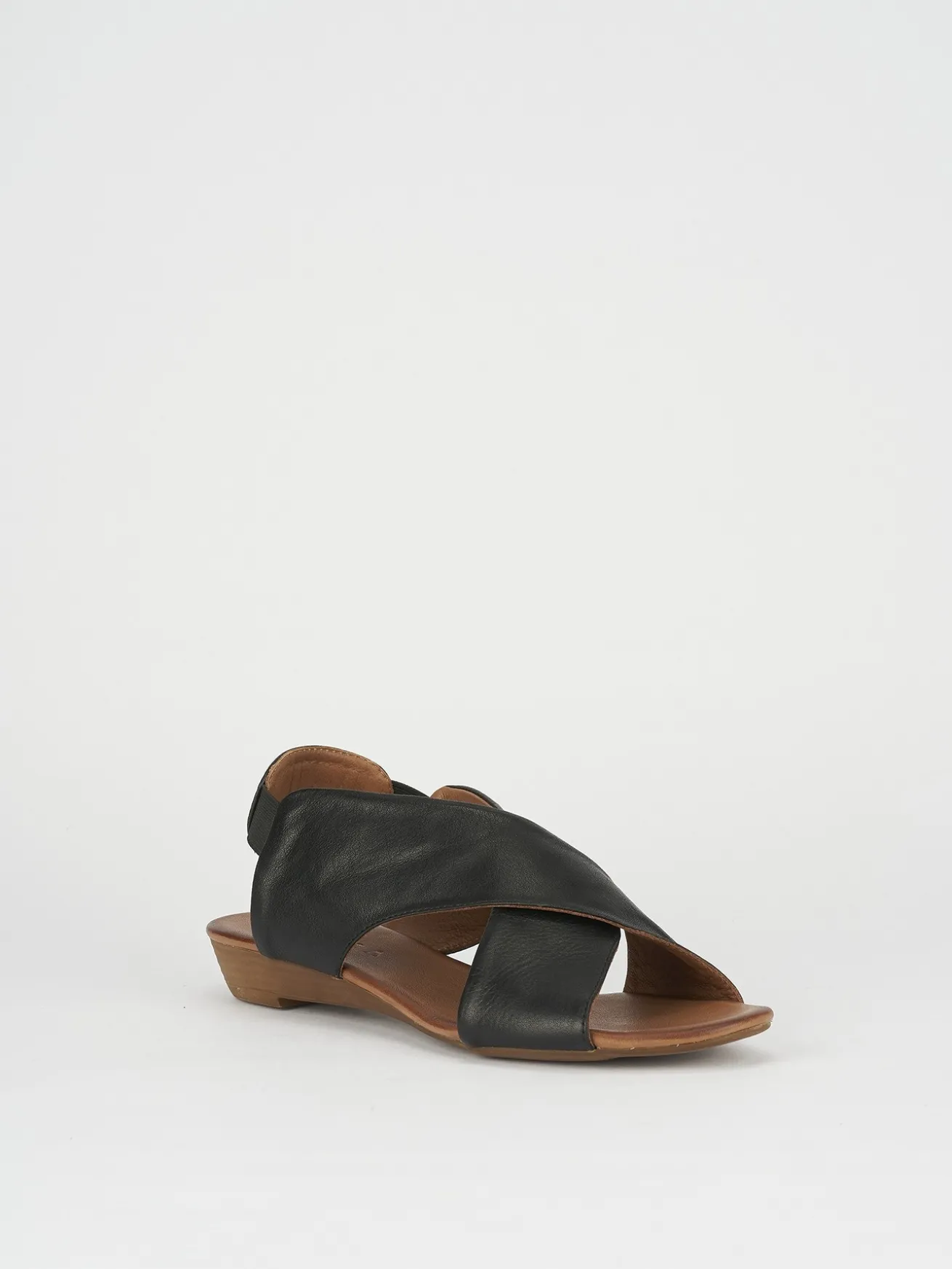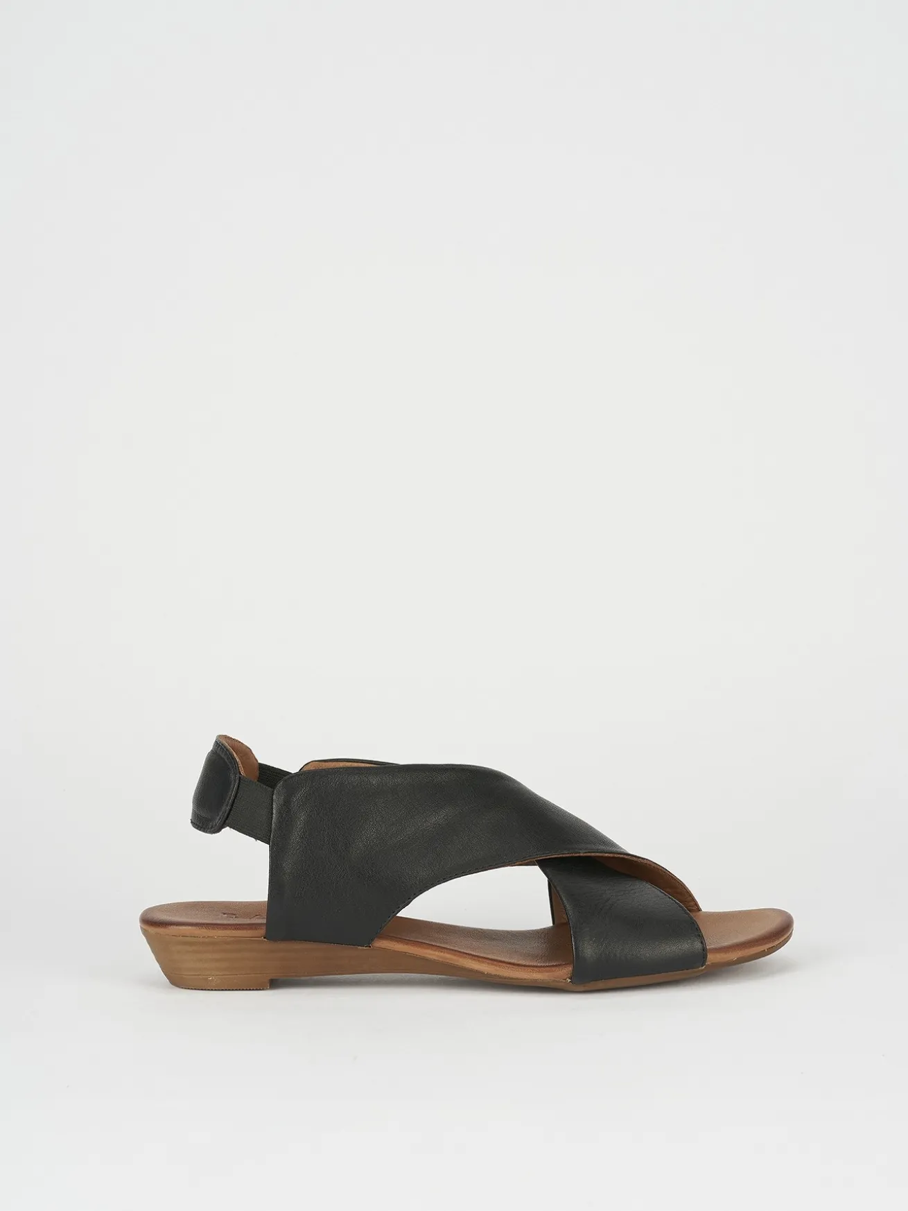 sandalo zeppa 3 cm fondo in leggerissima gomma e soletto interno in vera pelle. tomaia in morbida pelle, con fasce incrociate e comodissimo slingback elasticizzato per una calzata veloce.