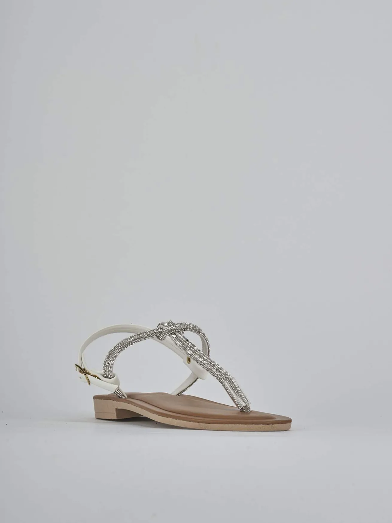 Realizzato in morbidissima pelle e decorato con strass sulla tomaia a T, questo sandalo è ideale per un look ultraminimal.