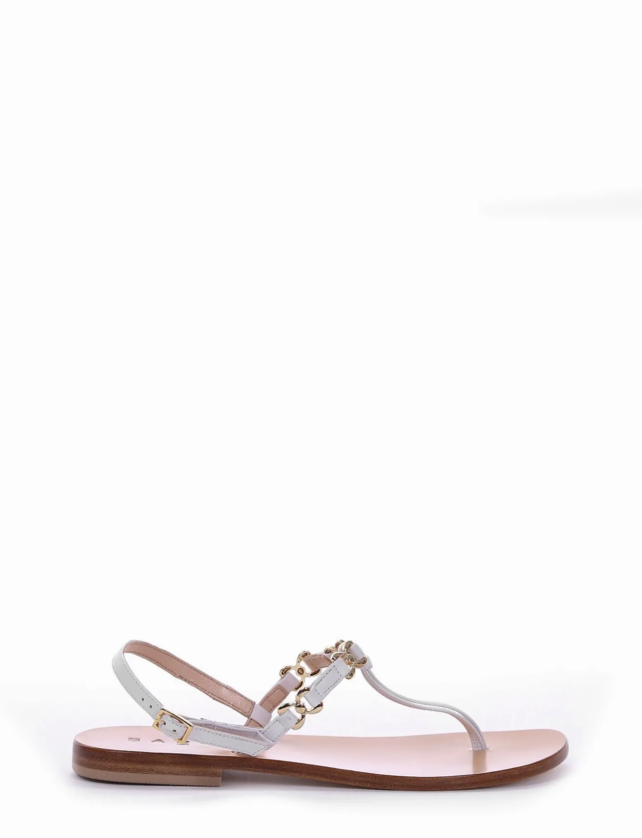sandalo tacco 1 cm, fondo in cuoio e soletto interno in vera pelle. Tomaia in bellissima pelle nappata con accessori in acciaio color oro.