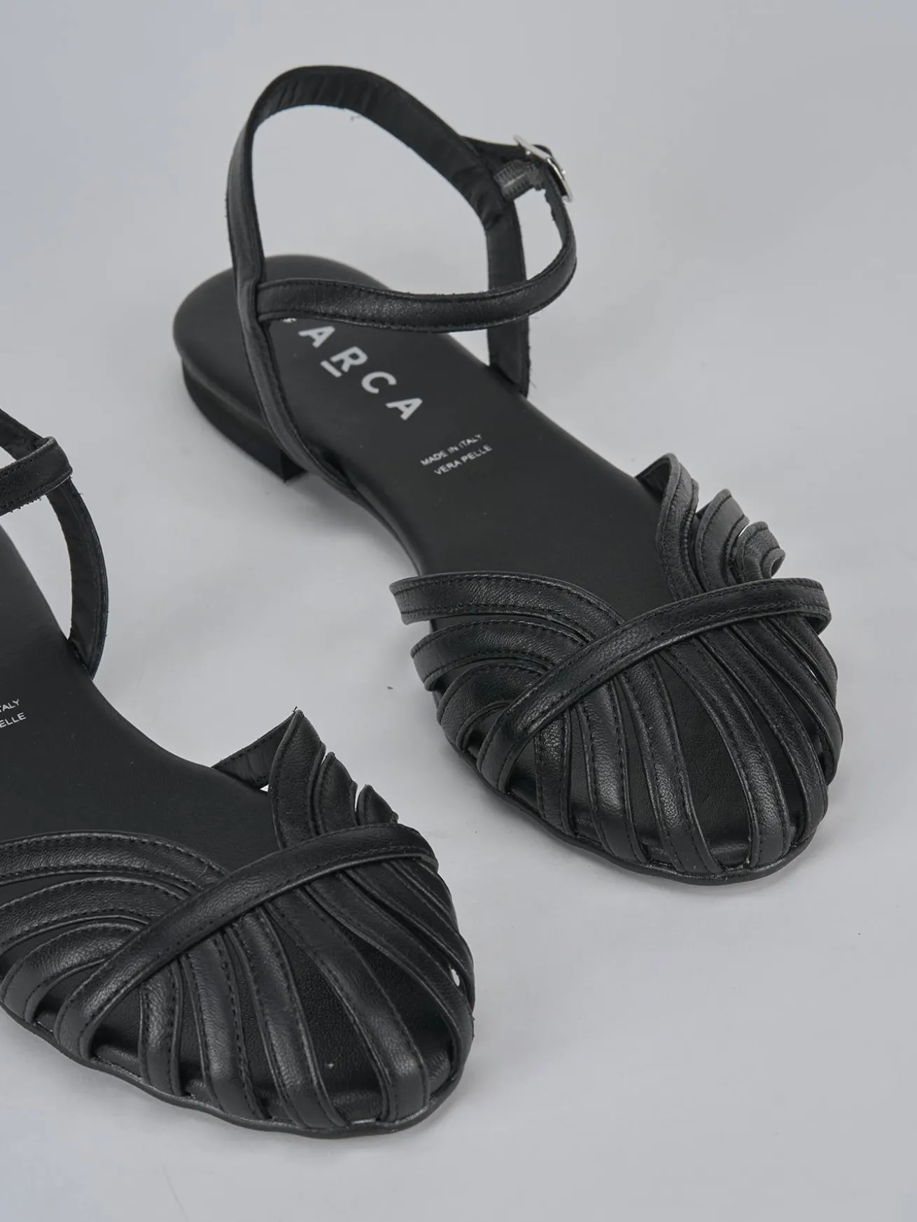La tomaia in morbida pelle avvolge delicatamente il piede, mentre le fasce a ragnetto sulla punta conferiscono un tocco distintivo e raffinato.