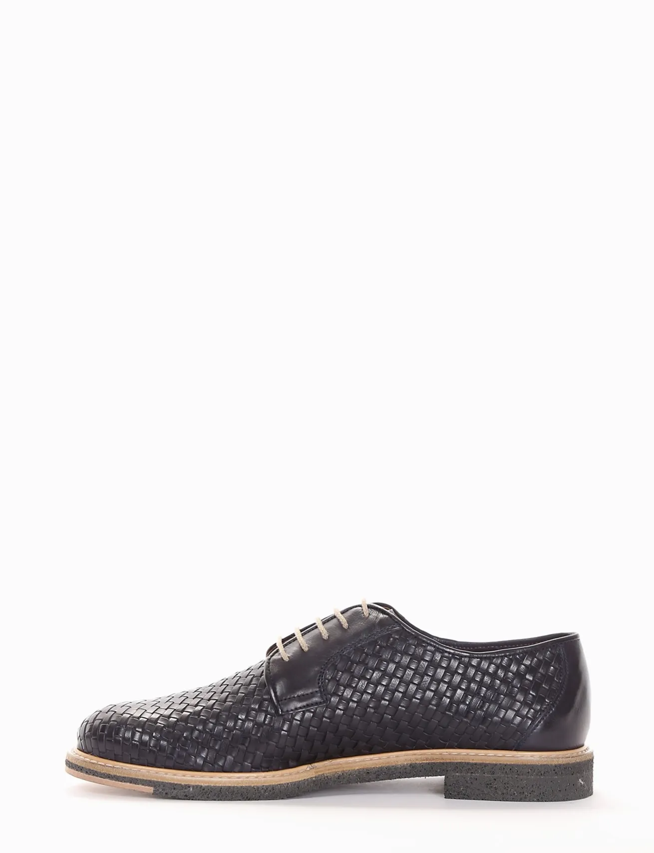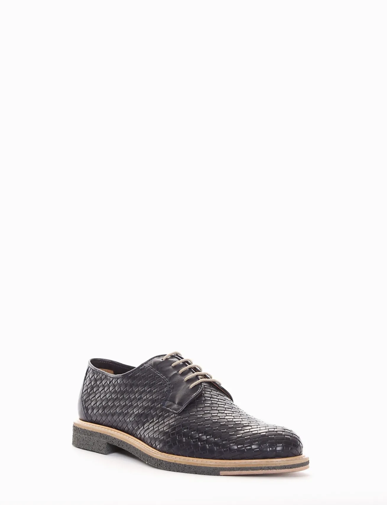 scarpa lacci tacco 2 cm, fondo in cuoio e soletto interno in vera pelle. Tomaia in morbidissima pelle nappata intrecciata con allacciatura a cinque fori.