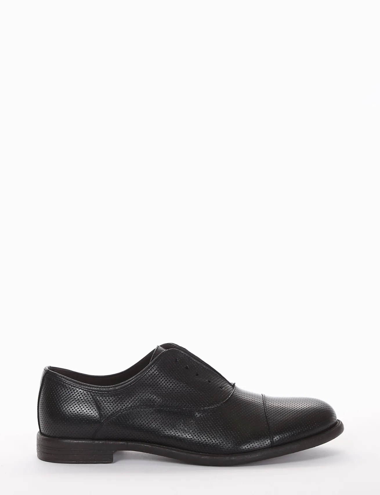 scarpa no lace tacco 2 cm, fondo in cuoio e soletto interno in vera pelle. Tomaia in morbida pelle microforata.