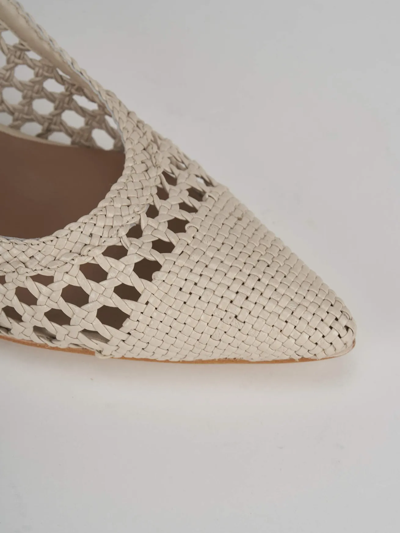 Slingback decolte tacco 5 cm fondo cuoio e soletto interno in vera pelle. tomaia in morbida pelle intrecciata artigianalmente, punta sfilata e chiusura con cinghietta posteriore per un look cool-chic. Tacco stabile adatto ad ogni momento della tua giornata.