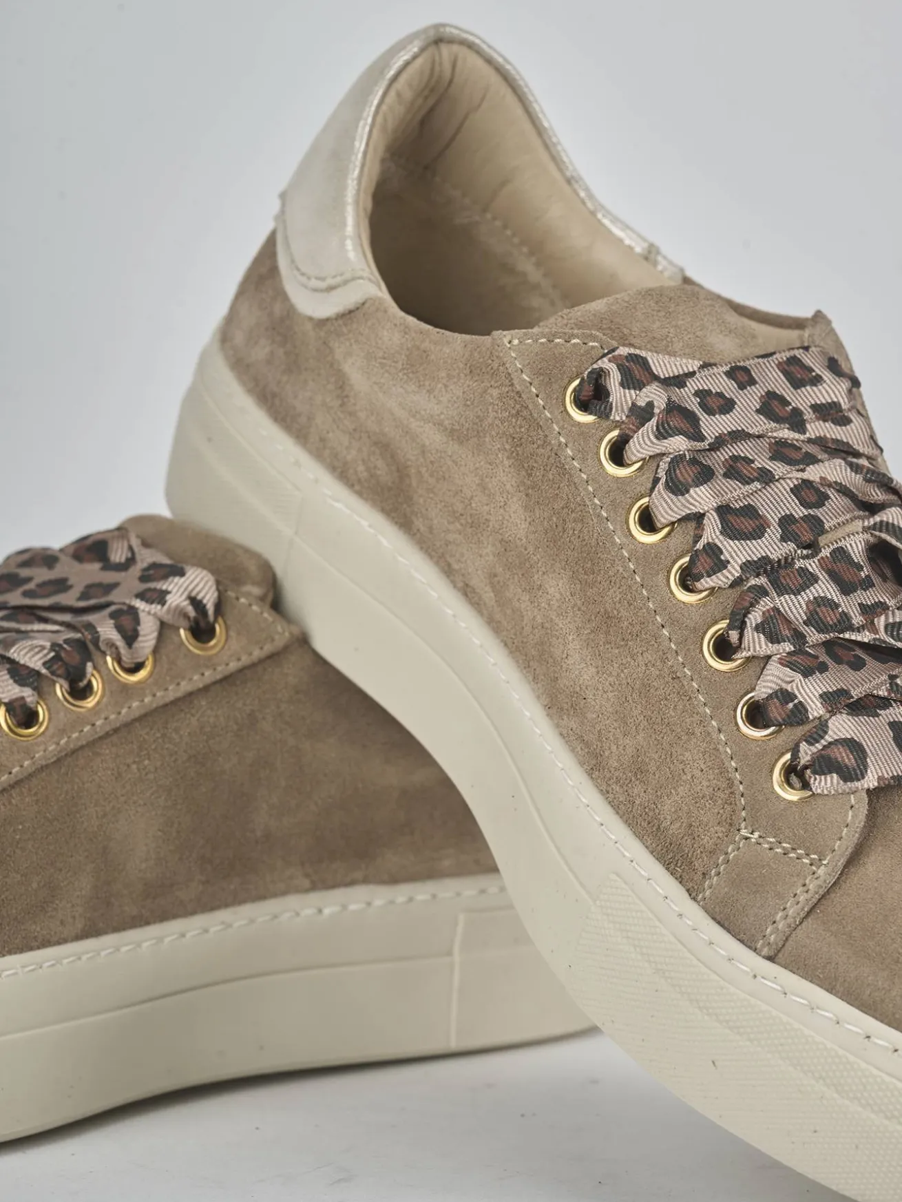Realizzate in morbido camoscio beige, queste sneakers sono l’ideale per accompagnarti in ogni momento della giornata.