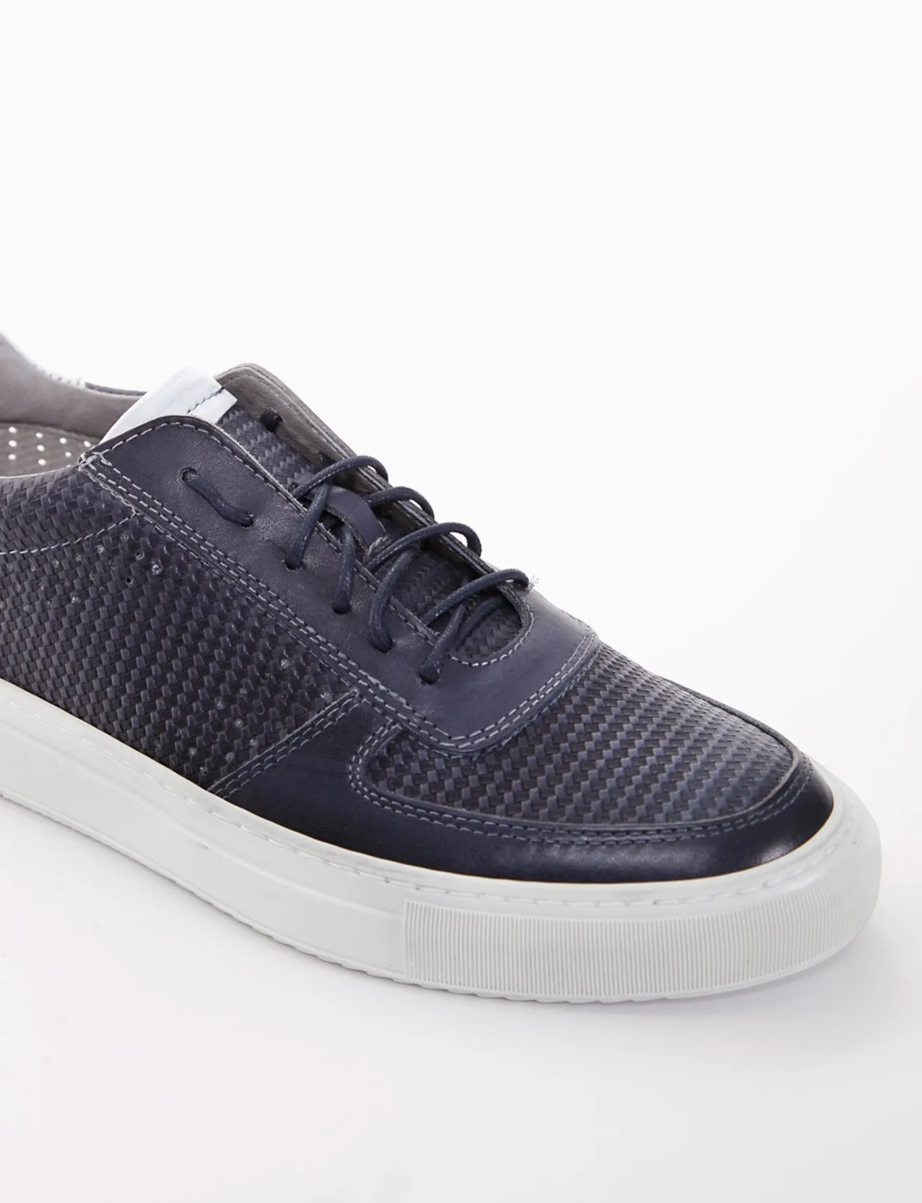 sneakers fondo in gomma e soletto interno in vera pelle. Tomaia in morbidissima pelle nappata intrecciata con particolarissima foratura su entrambi i lati blu