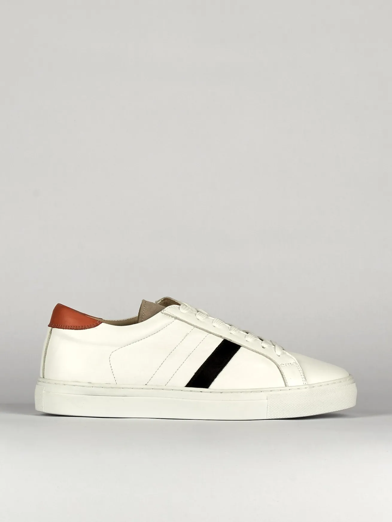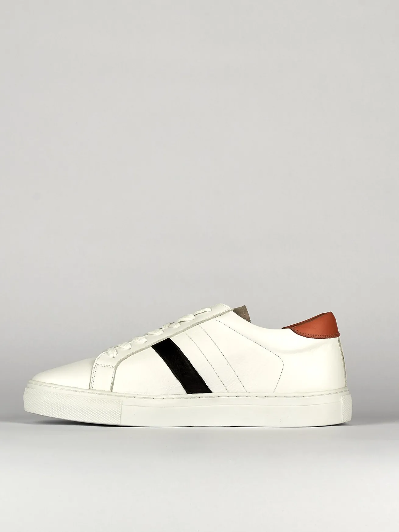Il design presenta dettagli a contrasto, come la striscia nera e il rinforzo sul tallone color cuoio, che aggiungono un tocco distintivo al tuo look.