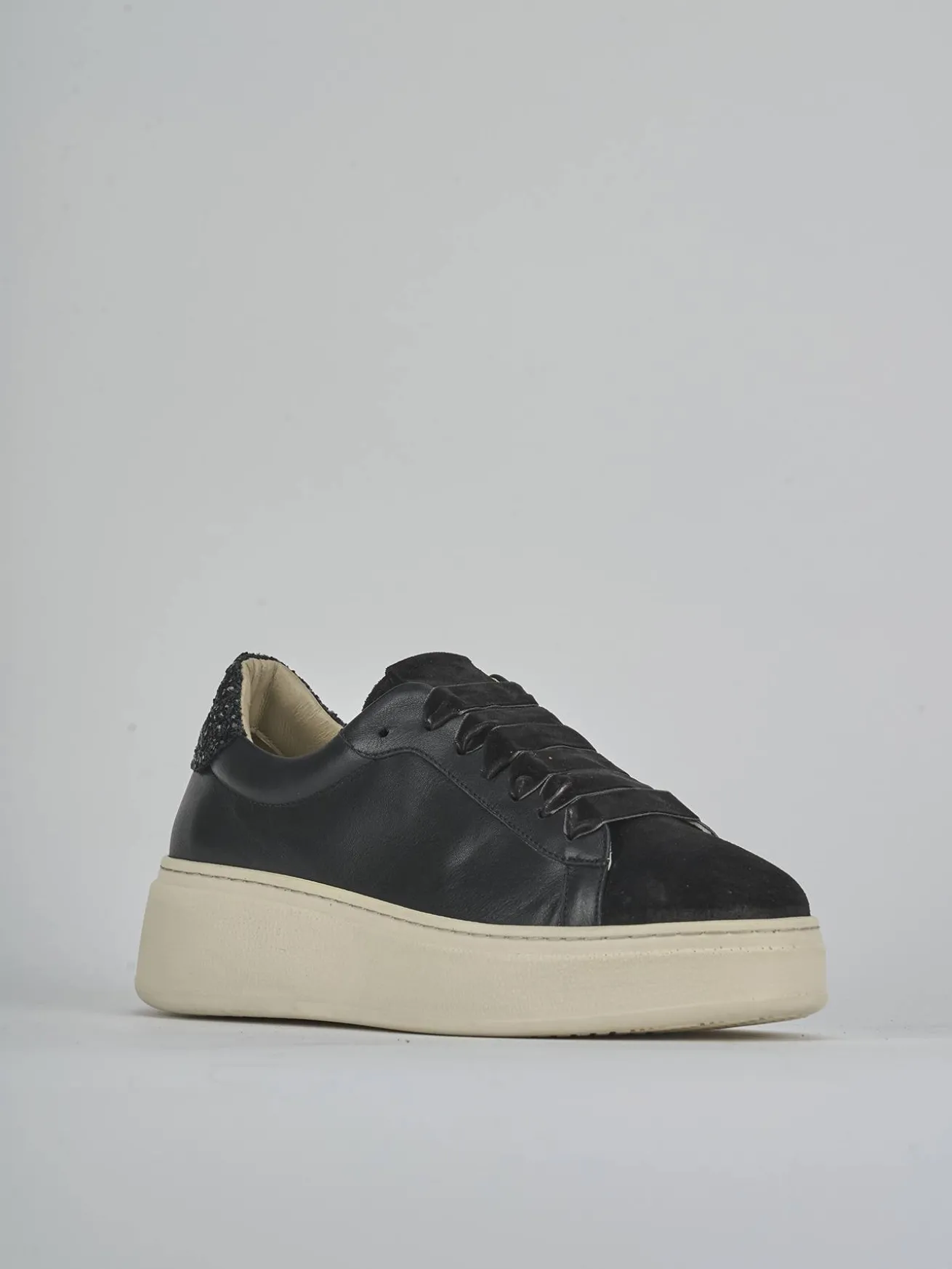 Le cuciture visibili e l’inserto in camoscio sulla punta conferiscono un look sofisticato.