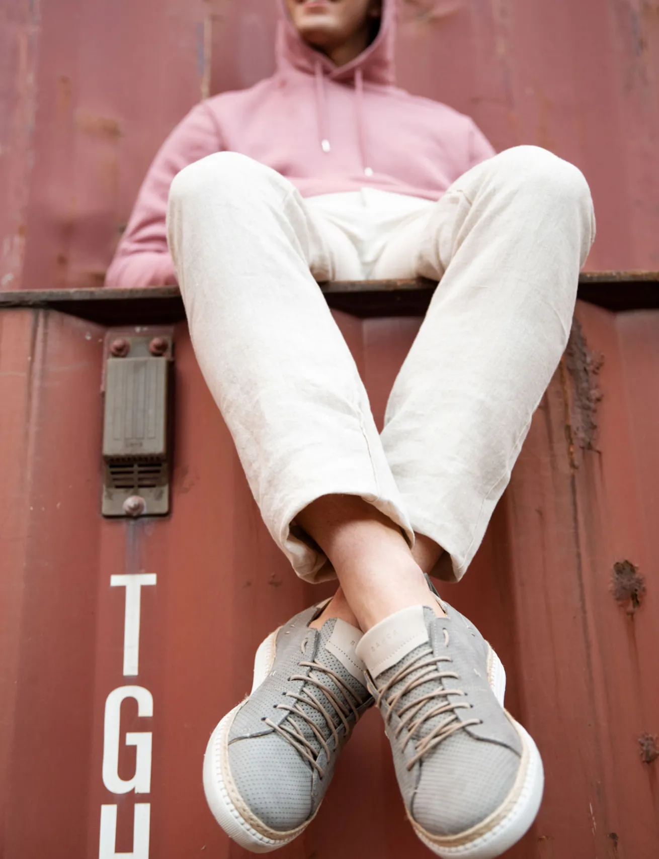 sneakers fondo in gomma e soletto interno in vera pelle. Tomaia in morbidissima pelle in nabuk interamente microforata con allacciatura lunga sul collo del piede.