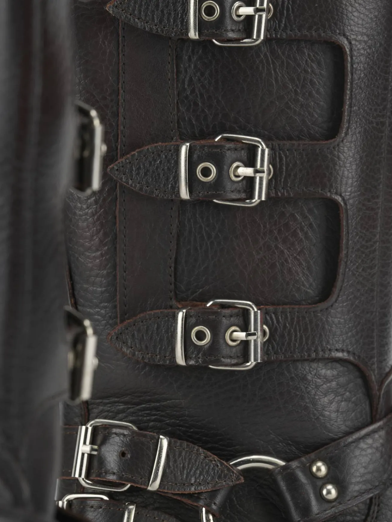 Dotato di una doppia fibbia all’altezza della caviglia e fibbie aggiuntive lungo il gambale, aggiunge un tocco deciso a qualsiasi outfit.