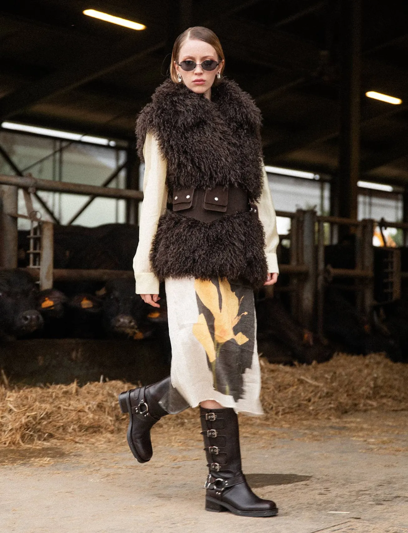 Il gambale si estende appena sotto il ginocchio, perfetto per essere abbinato a un vestito o una gonna in stile biker.