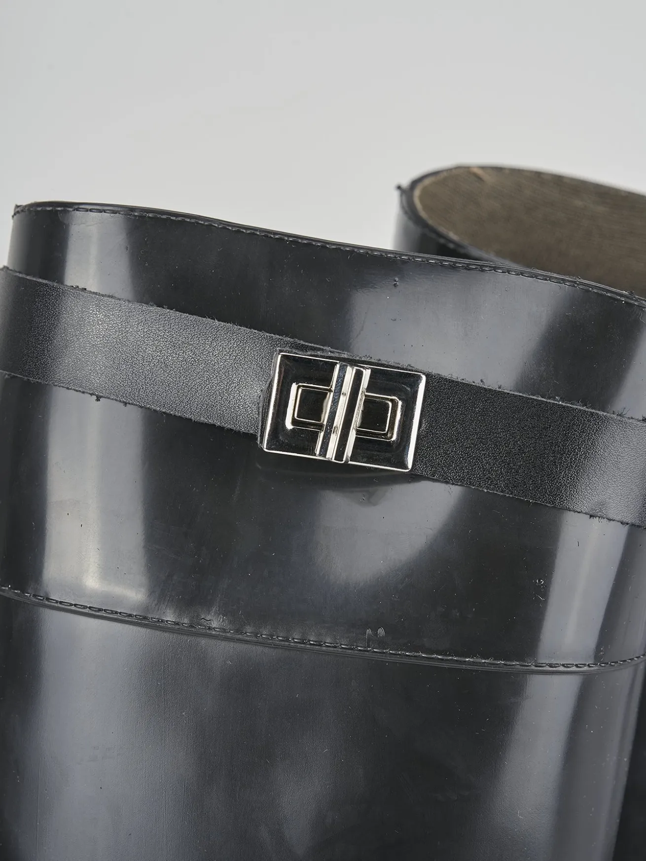 Realizzato in gomma nera, questo stivale da donna presenta un tacco basso di 2 cm, ideale per chi cerca comodità senza rinunciare all’eleganza.