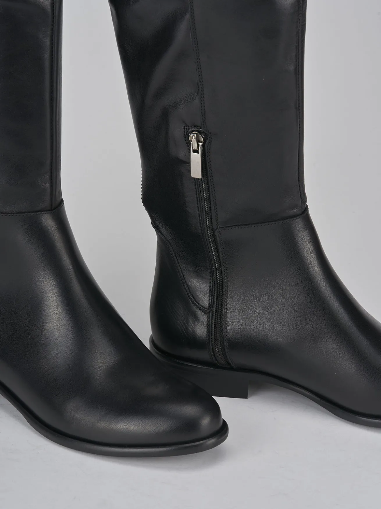 L’altezza del gambale arriva appena sotto il ginocchio, mentre la pratica cerniera laterale aggiunge un tocco cool.