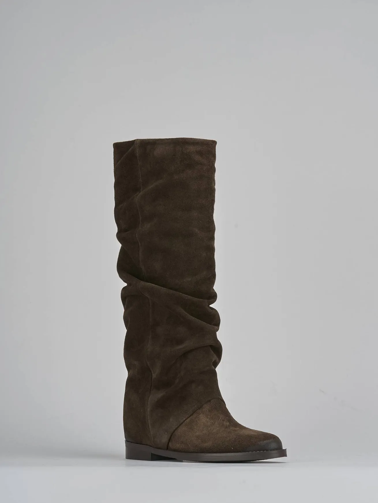 Realizzato in morbida pelle scamosciata color testa di moro, questo stivale è un must-have per il tuo guardaroba.