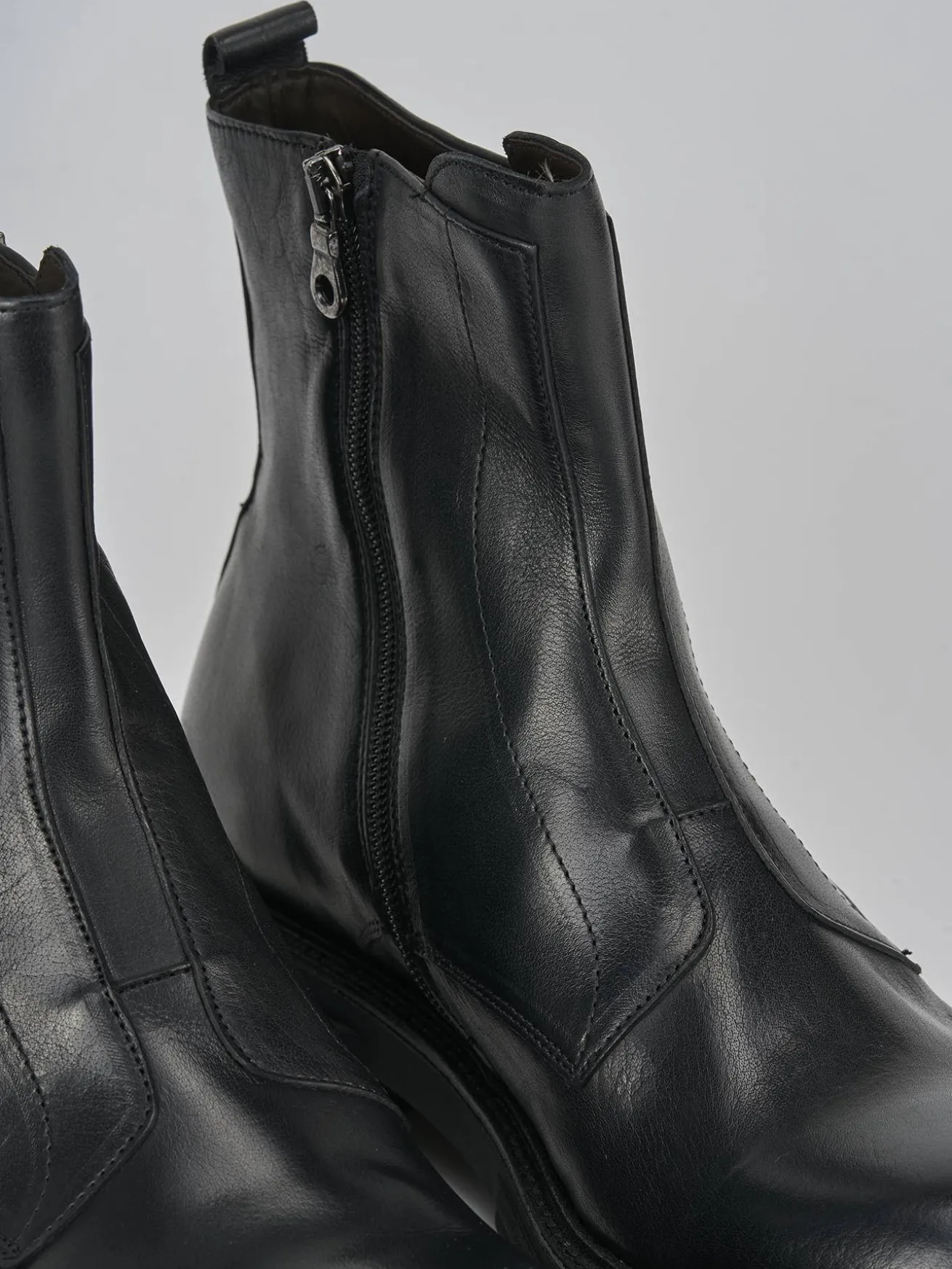 Realizzati con una tomaia in morbida pelle, questi stivaletti presentano una punta affusolata e cuciture a mano che ne esaltano l’artigianalità.