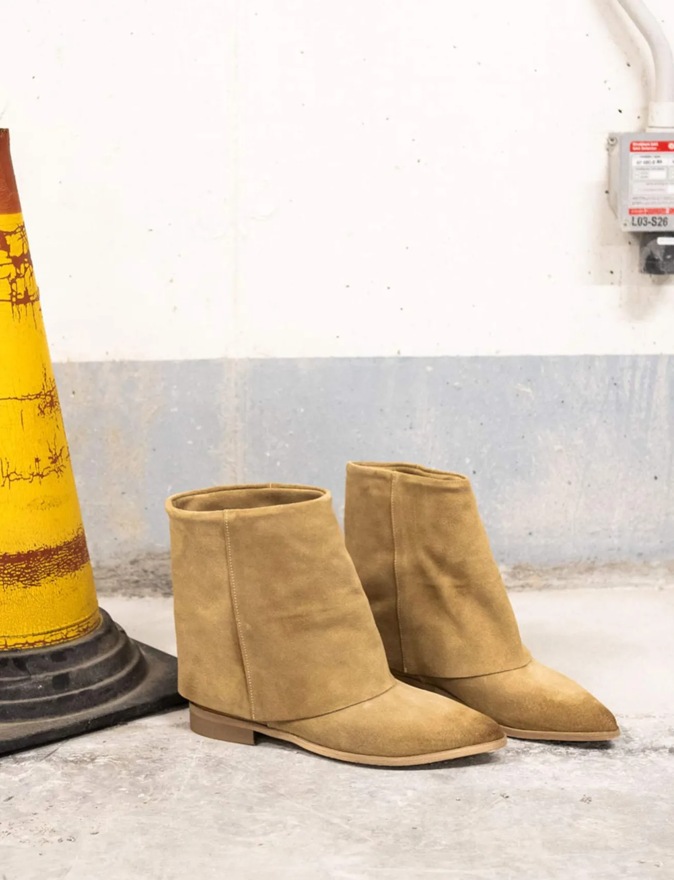 Le cuciture a mano e il risvolto conferiscono un aspetto artigianale e unico a questi stivaletti.