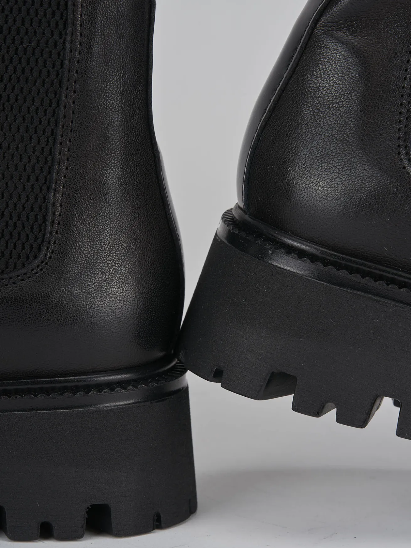 Stivaletto chelsea tacco 2 cm fondo in gomma e soletto interno in vera pelle. Tomaia in morbida pelle, punta affusolata, lavorazione inglese in punta risaltata dalla pelle abrasivata,, tessuto elasticizzato ai lati e particolare fondo seghettato per un look che ti farà notare.