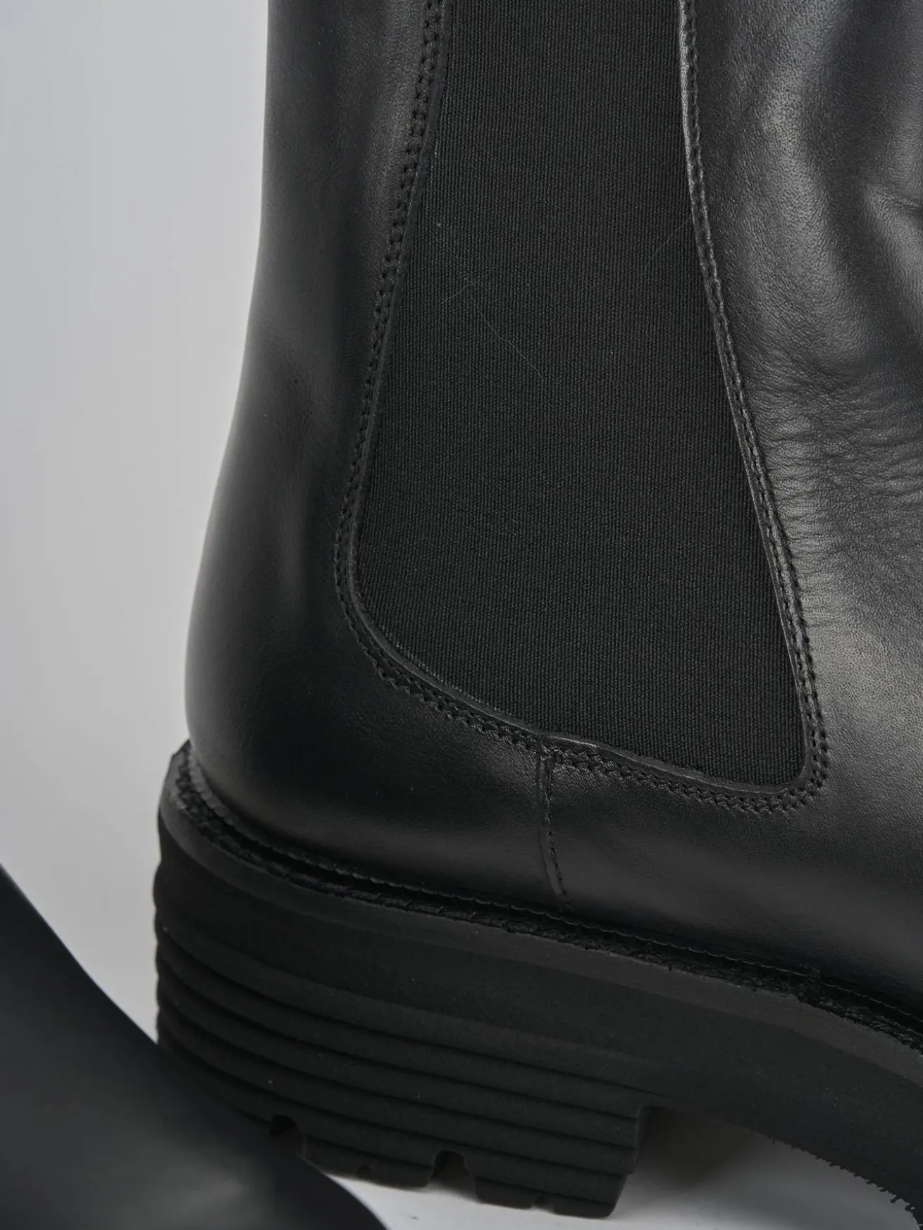 Realizzati in elegante pelle nera nappata, presentano una punta tonda e cuciture visibili che aggiungono un tocco di carattere al design.