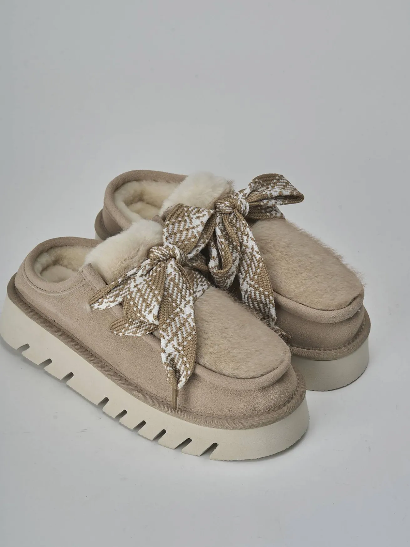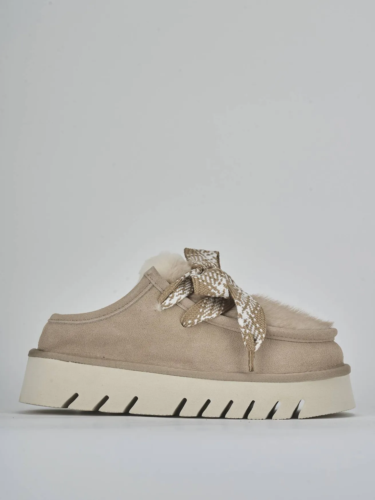 Realizzati in morbido camoscio beige, questi sabot con tacco di 3 cm offrono un supporto ideale per le giornate dinamiche.