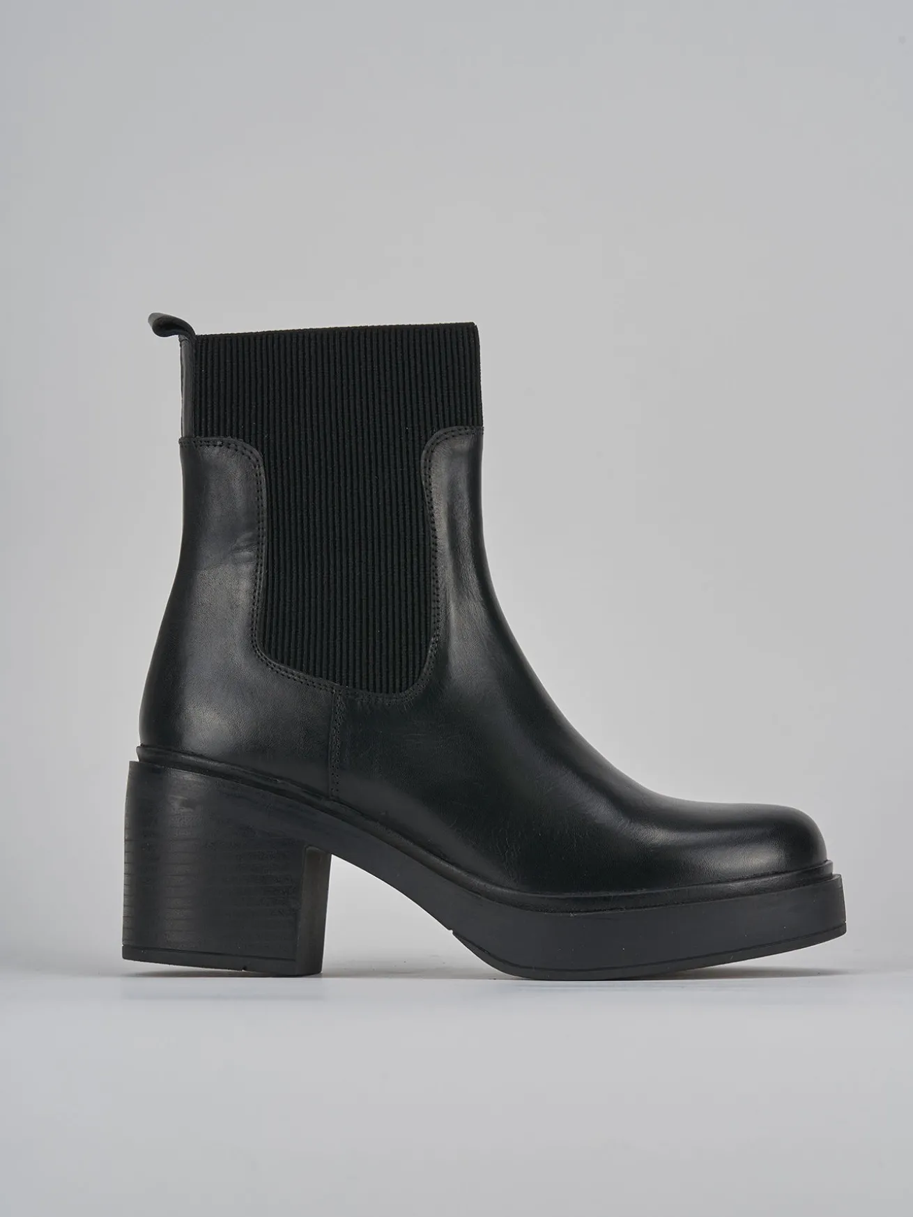Stivaletto tacco 5 cm fondo in gomma e soletto interno in vera pelle. tomaia in morbida pelle, punta leggermente squadrata, lati elasticizzati, anello sul tallone. tacco grosso e plateau di 2 cm sulla parte anteriore per una camminata facilitata.