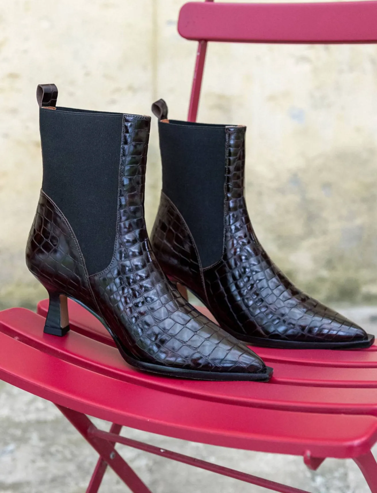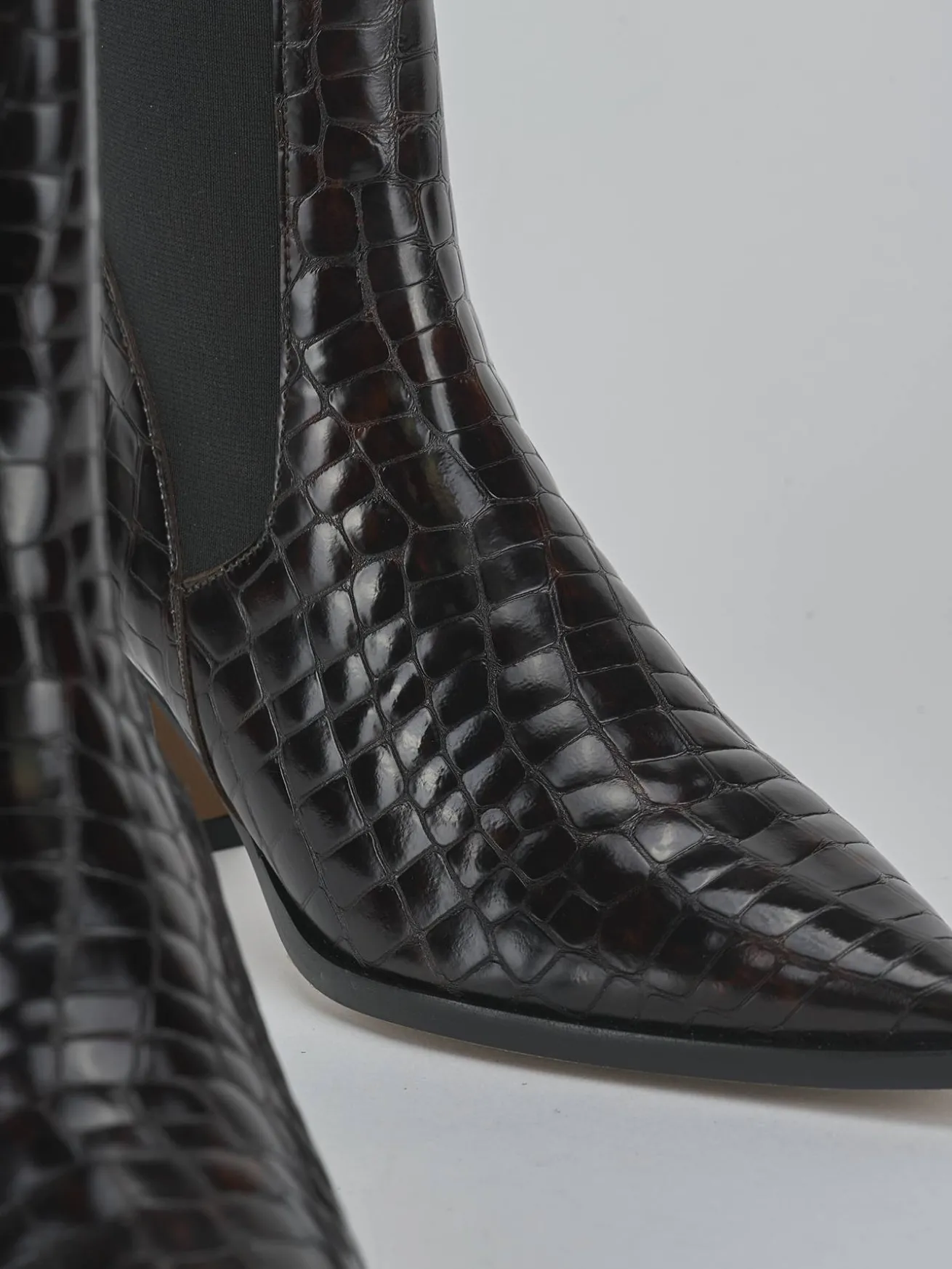 Il guardolo sporgente e il nuovissimo tacco rocchetto in materiale ABS completano l’estetica raffinata di questi stivaletti.