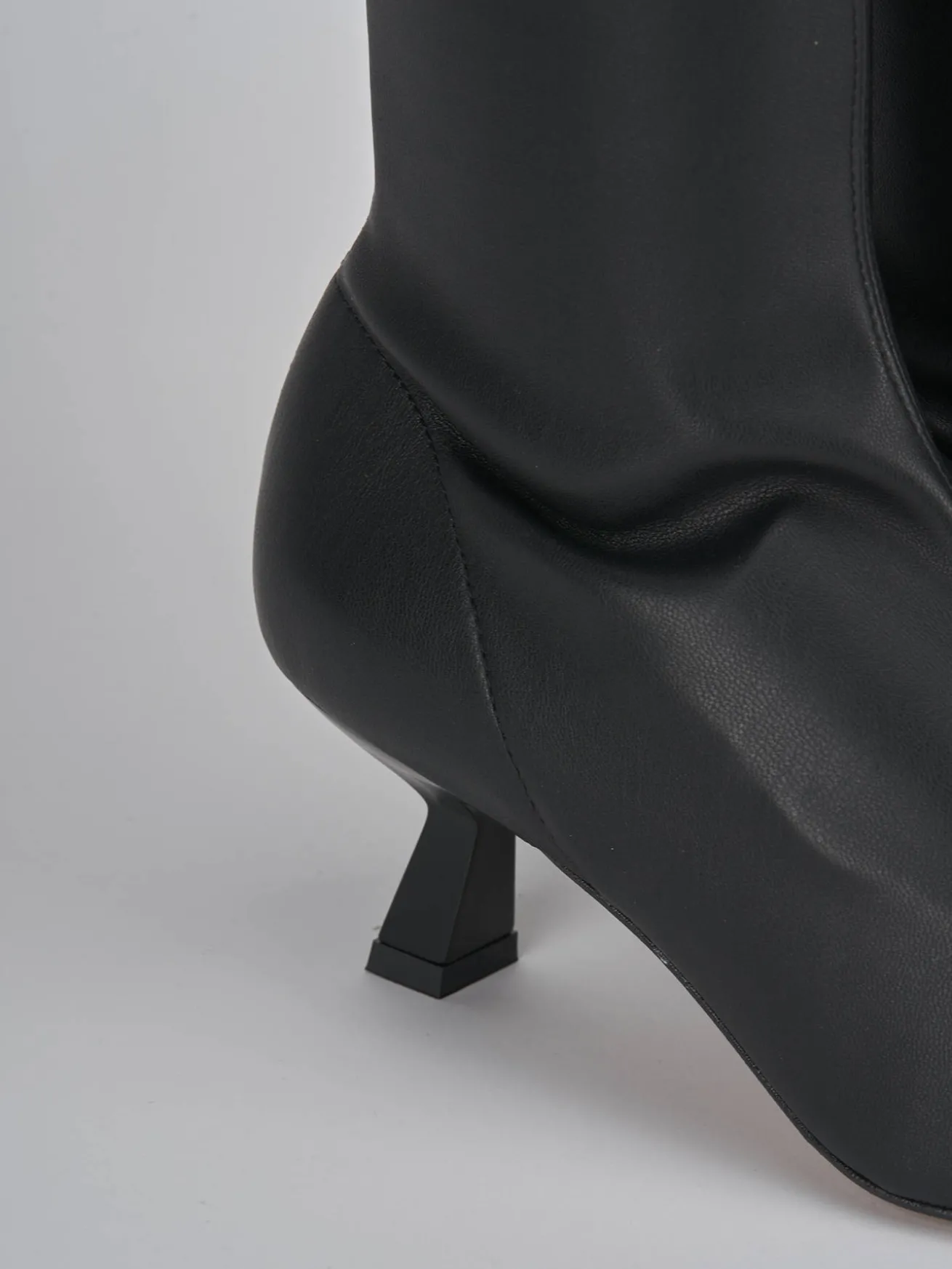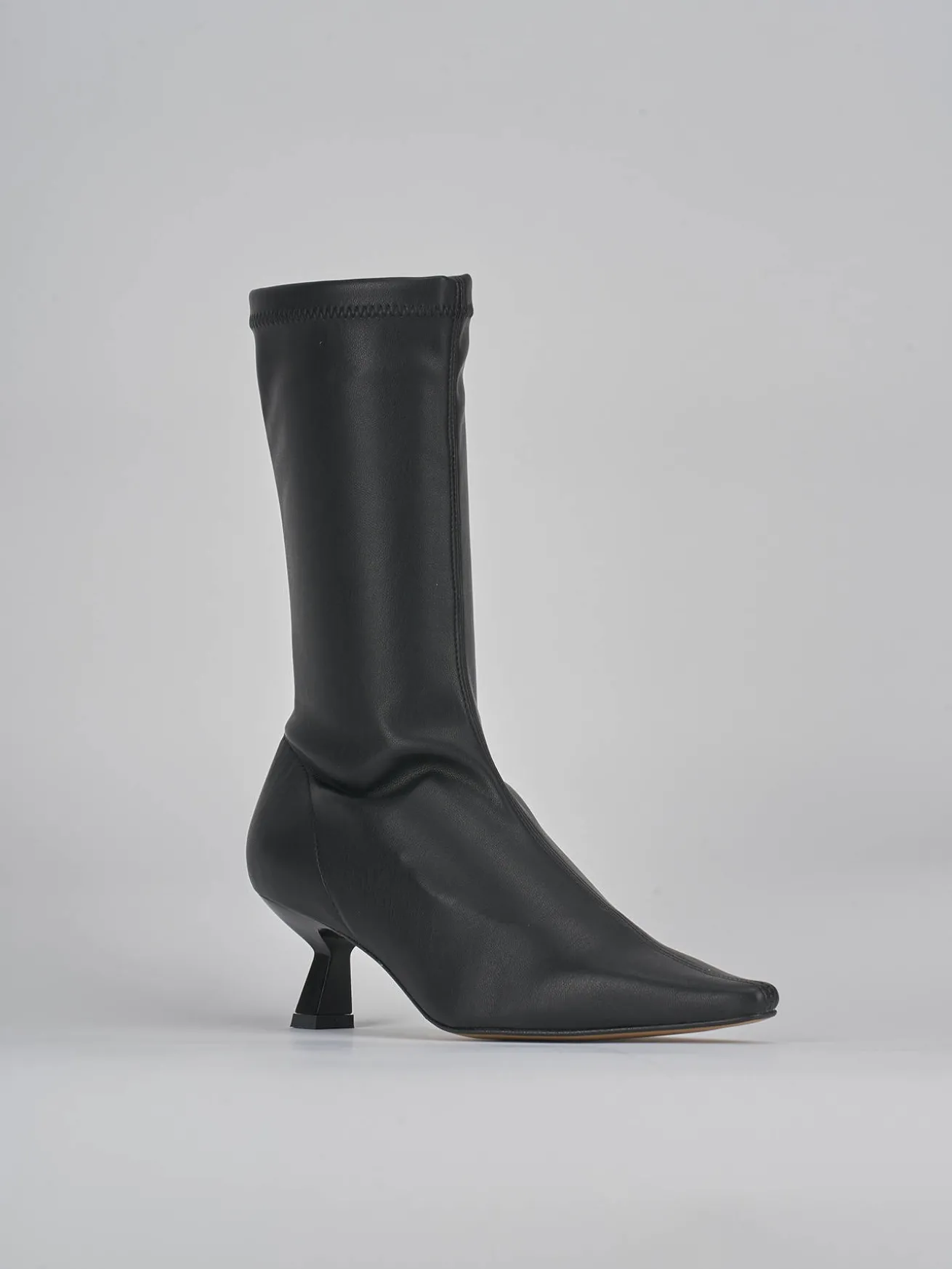 tronchetto tacco 5 cm fondo in gomma e soletto interno in vera pelle. tomaia in morbida pelle elasticizzata, punta sfilata e nuovissimo tacco rocchetto. altezza gambale a metà polpaccio che grazie alla tomaia regala una maggiore adattabilità. dal design senza tempo, è perfetto con qualsiasi tuo outfit.
